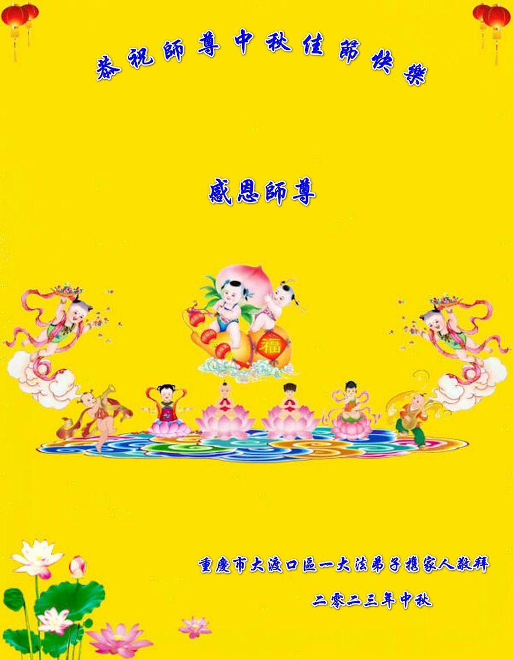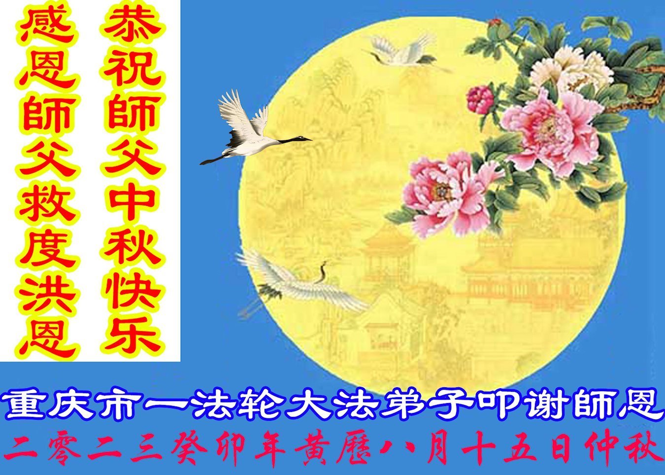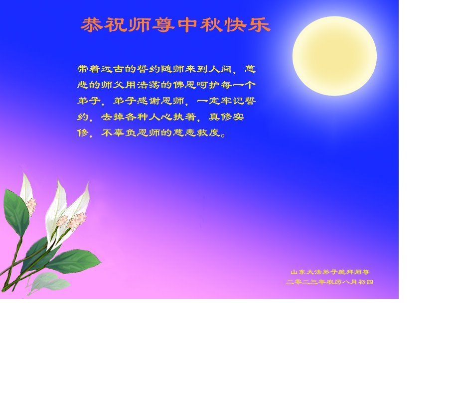 <英文版: https://en.minghui.org/html/articles/2023/9/28/211655.html>中国明真相百姓恭祝大法师父中秋节快乐