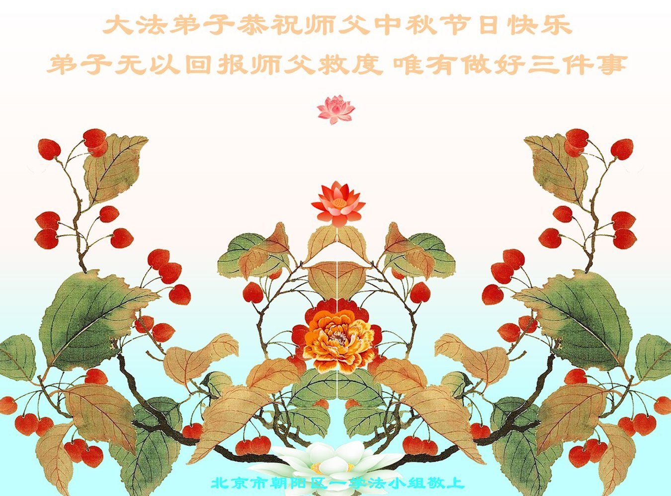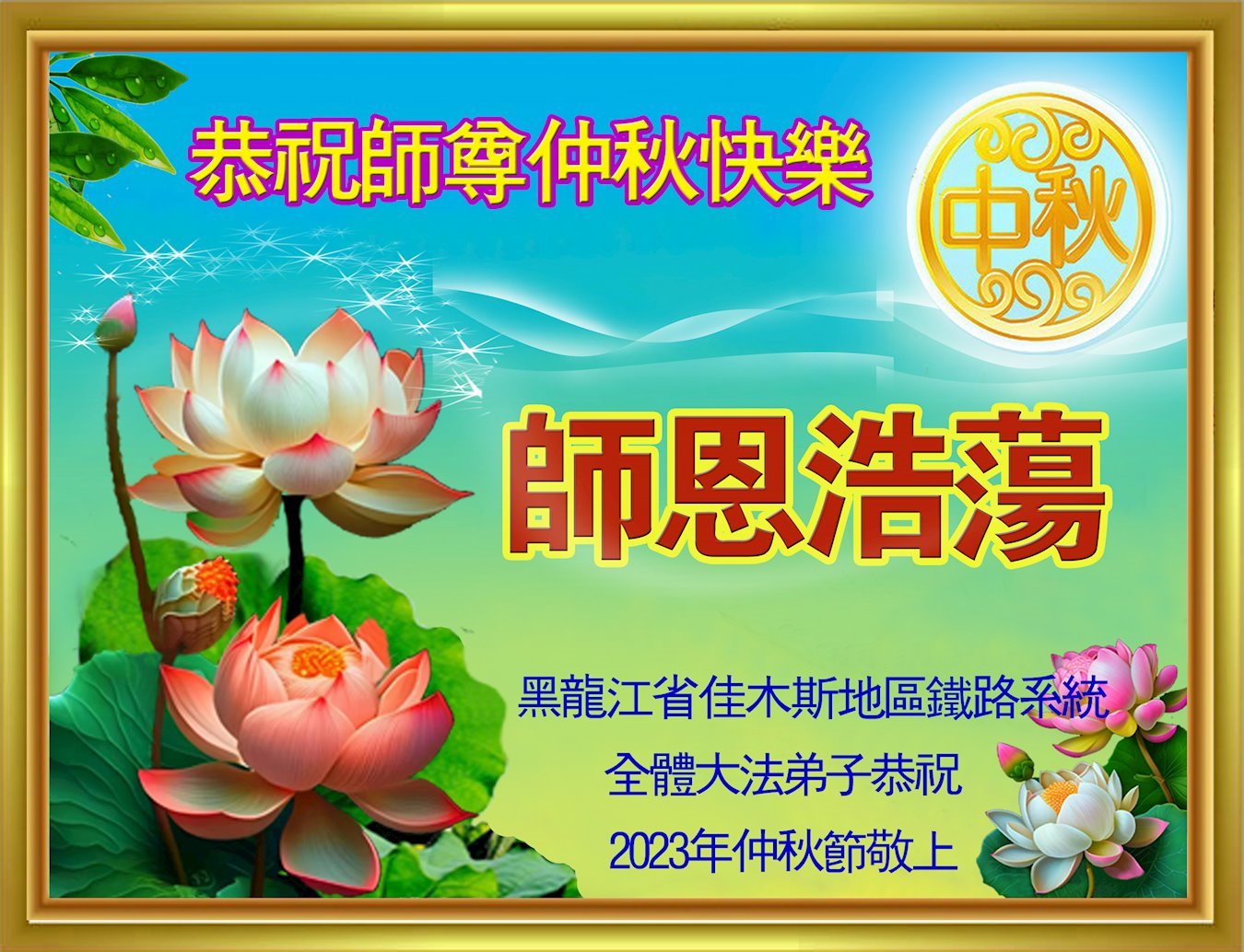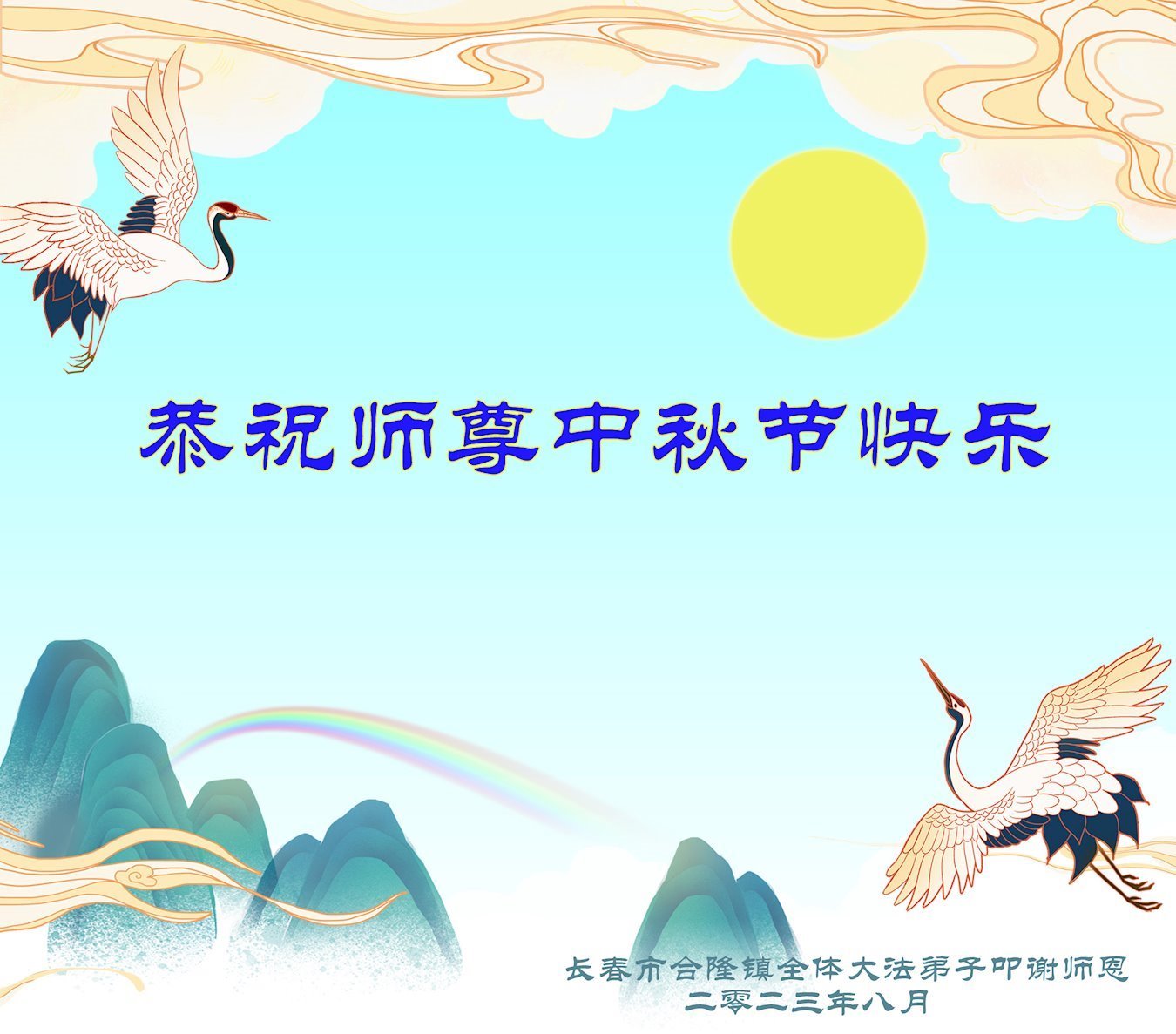 <英文版: https://en.minghui.org/html/articles/2023/9/28/211655.html>中国明真相百姓恭祝大法师父中秋节快乐