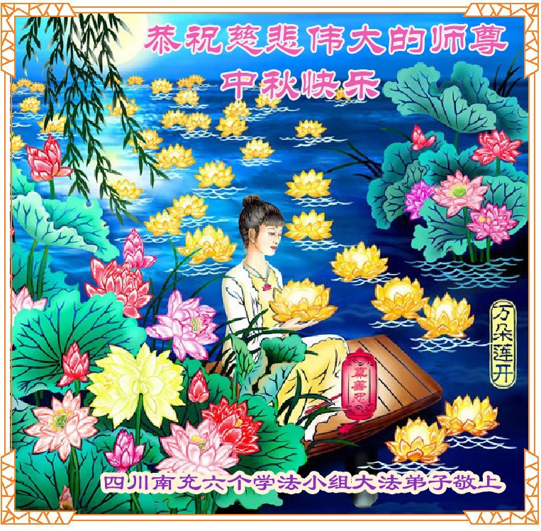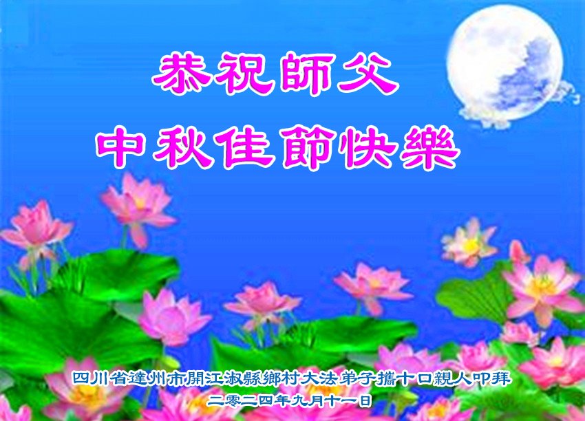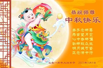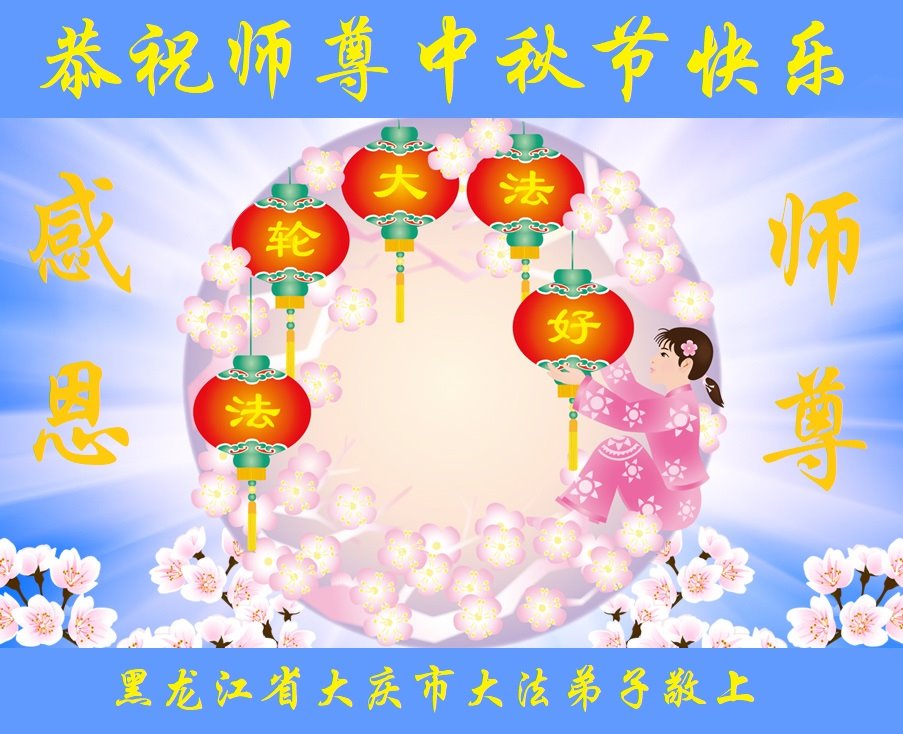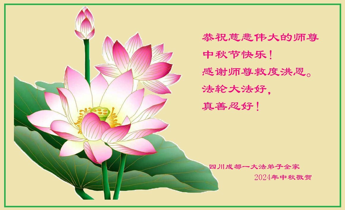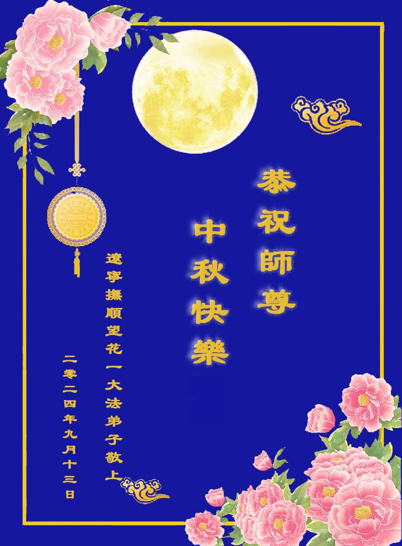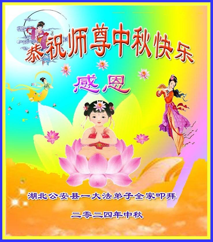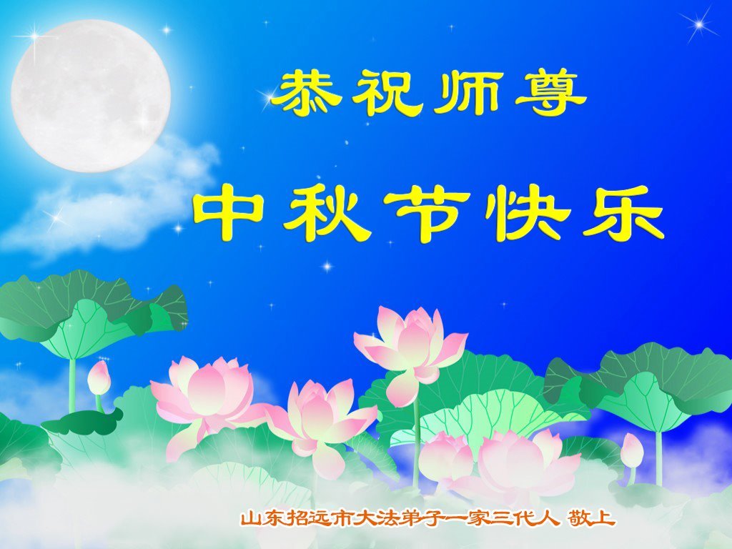 弟子和家人同修恭祝师父中秋节快乐!感恩师父对弟子和家人同修的一路慈悲看护!弟子也感恩师父对弟子的一切慈悲安排!弟子一定努力多学法炼功,用心做好救人的事情,修去妒嫉心,怨恨心,及人心,人念,人情,努力做好师父让弟子做的救人的事,跟随师父回家!