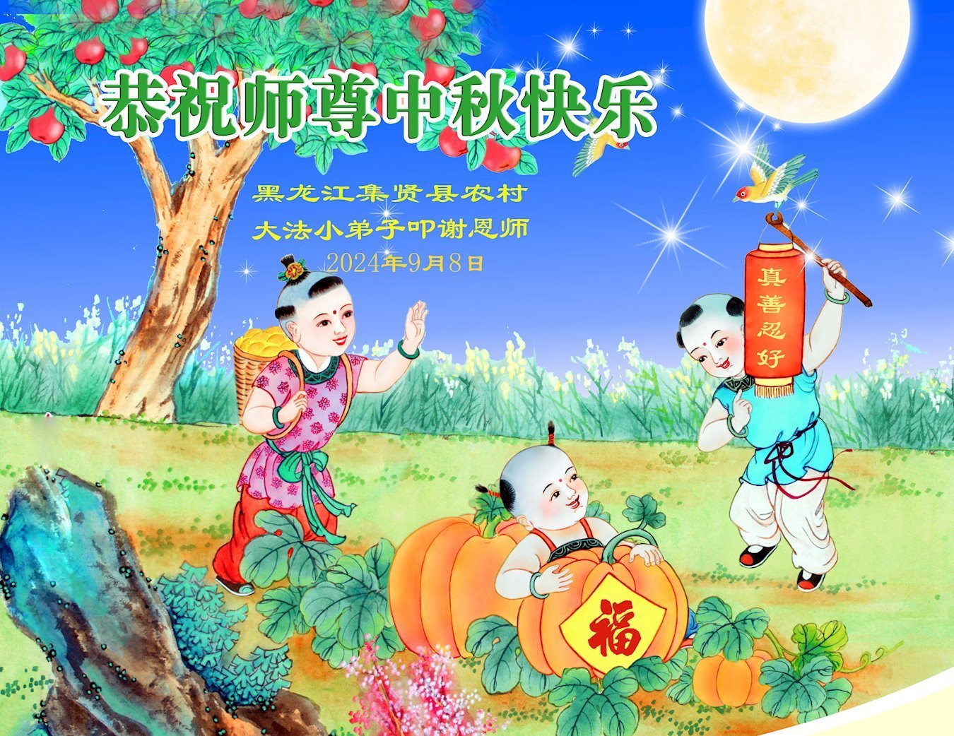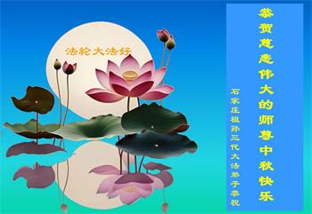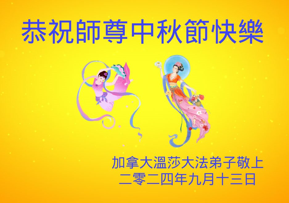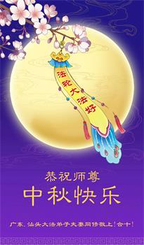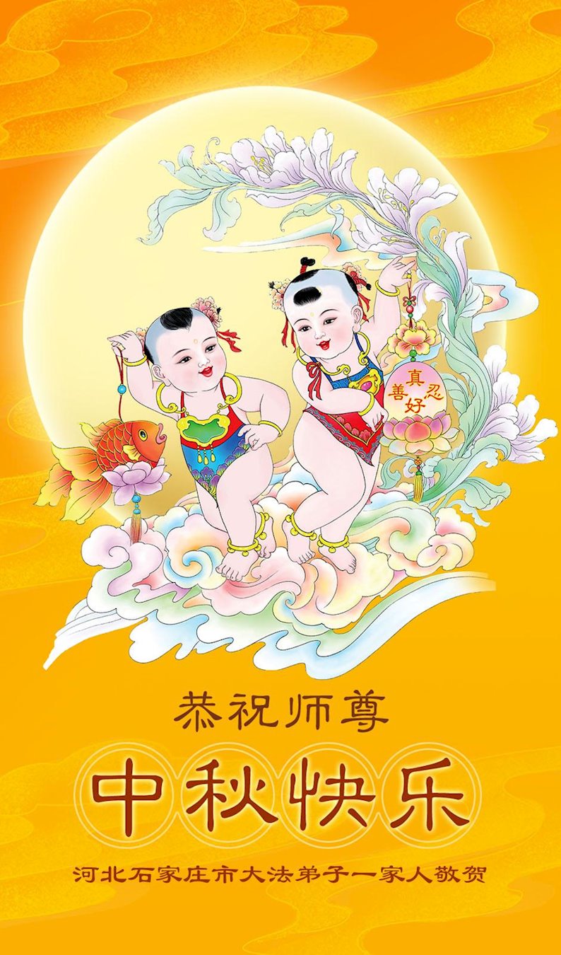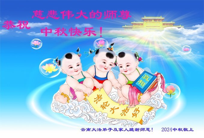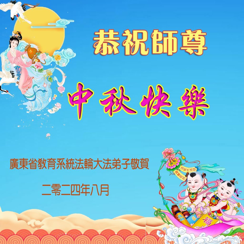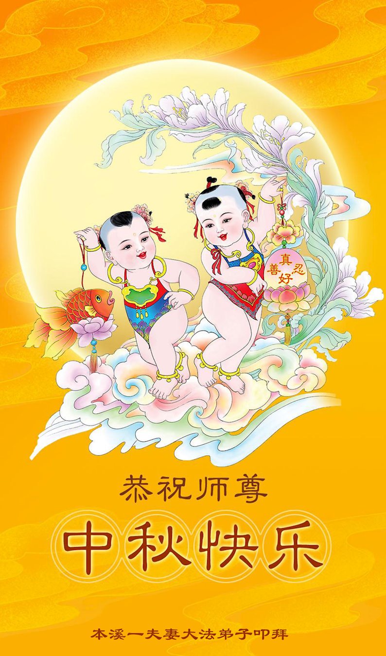 弟子和家人同修恭祝师父中秋节快乐!感恩师父对弟子和家人同修的一路慈悲看护!弟子也感恩师父对弟子的一切慈悲安排!弟子一定努力多学法炼功,用心做好救人的事情,修去妒嫉心,怨恨心,及人心,人念,人情,努力做好师父让弟子做的救人的事,跟随师父回家!