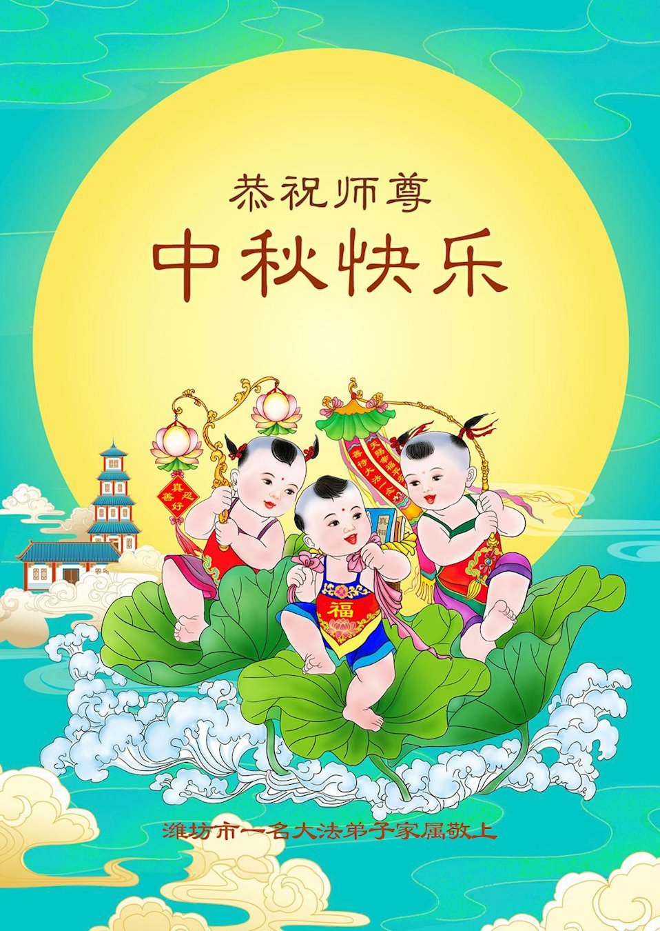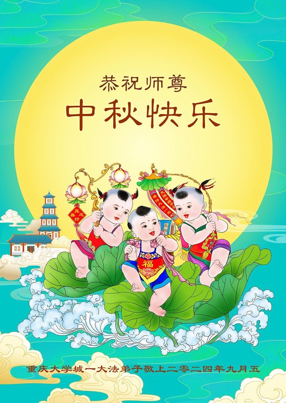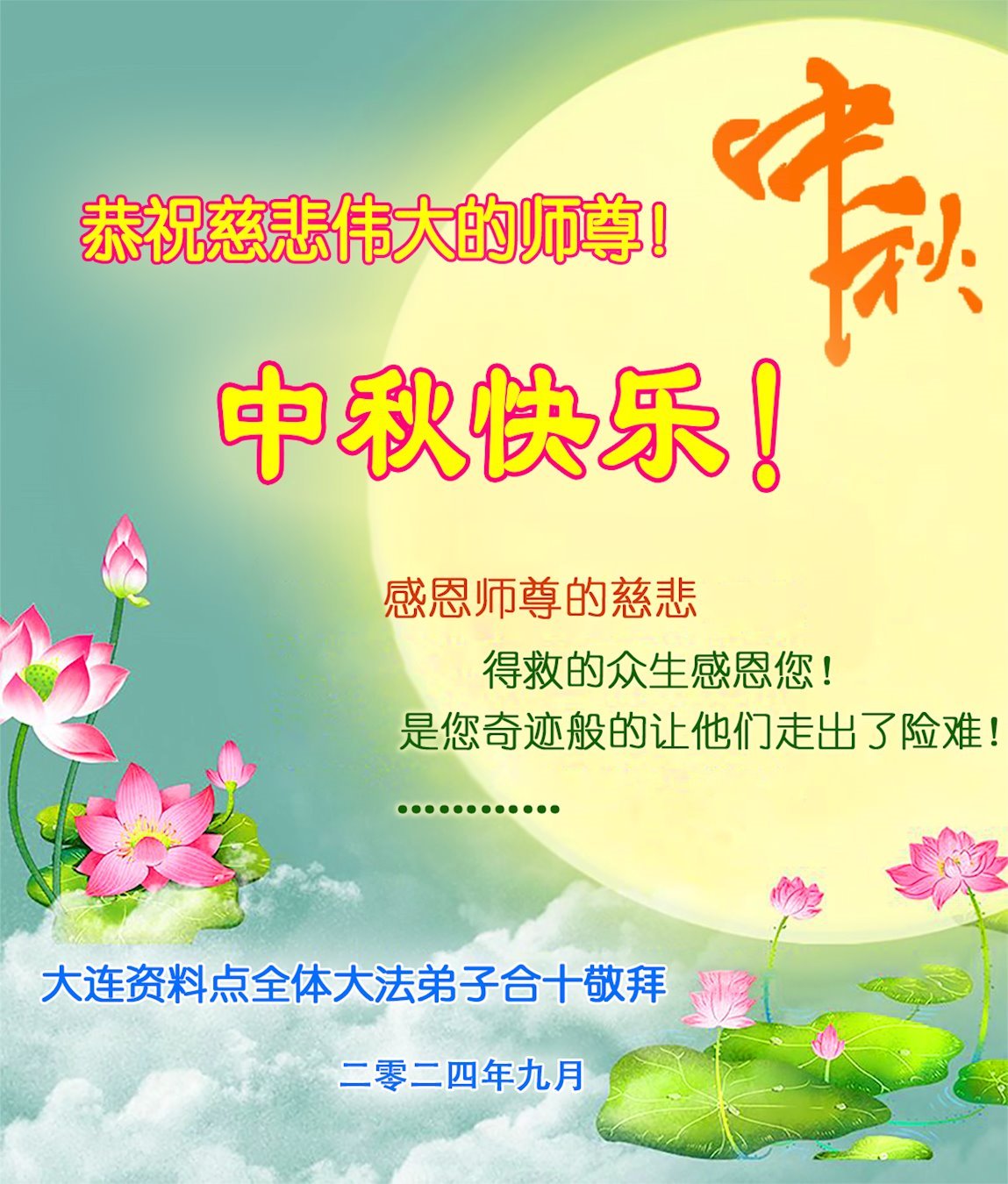 恭祝亲爱的、伟大的师父中秋节快乐!