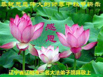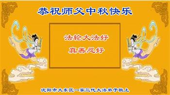 越修炼到最后,越想念师尊,恭祝师尊中秋节快乐!我每天都听师父的话,忙着打电话讲真相,多年来白天打营救电话,晚间劝三退,每天乐呵呵地,和同修配合的非常好。感激师父的加持!弟子今后要救度更多众生,完成师父赋予的历史使命,高高兴兴地跟师父回家。