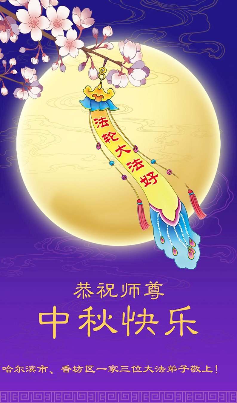 中秋节是合家团圆的日子,我们虽无法与家人团聚,心却是连在一起的。感谢师尊对我们修炼的加持!弟子坚定走正修炼的路。