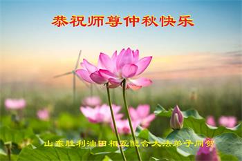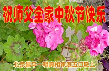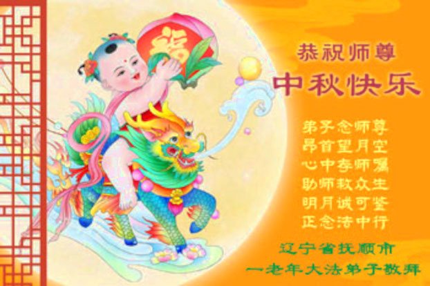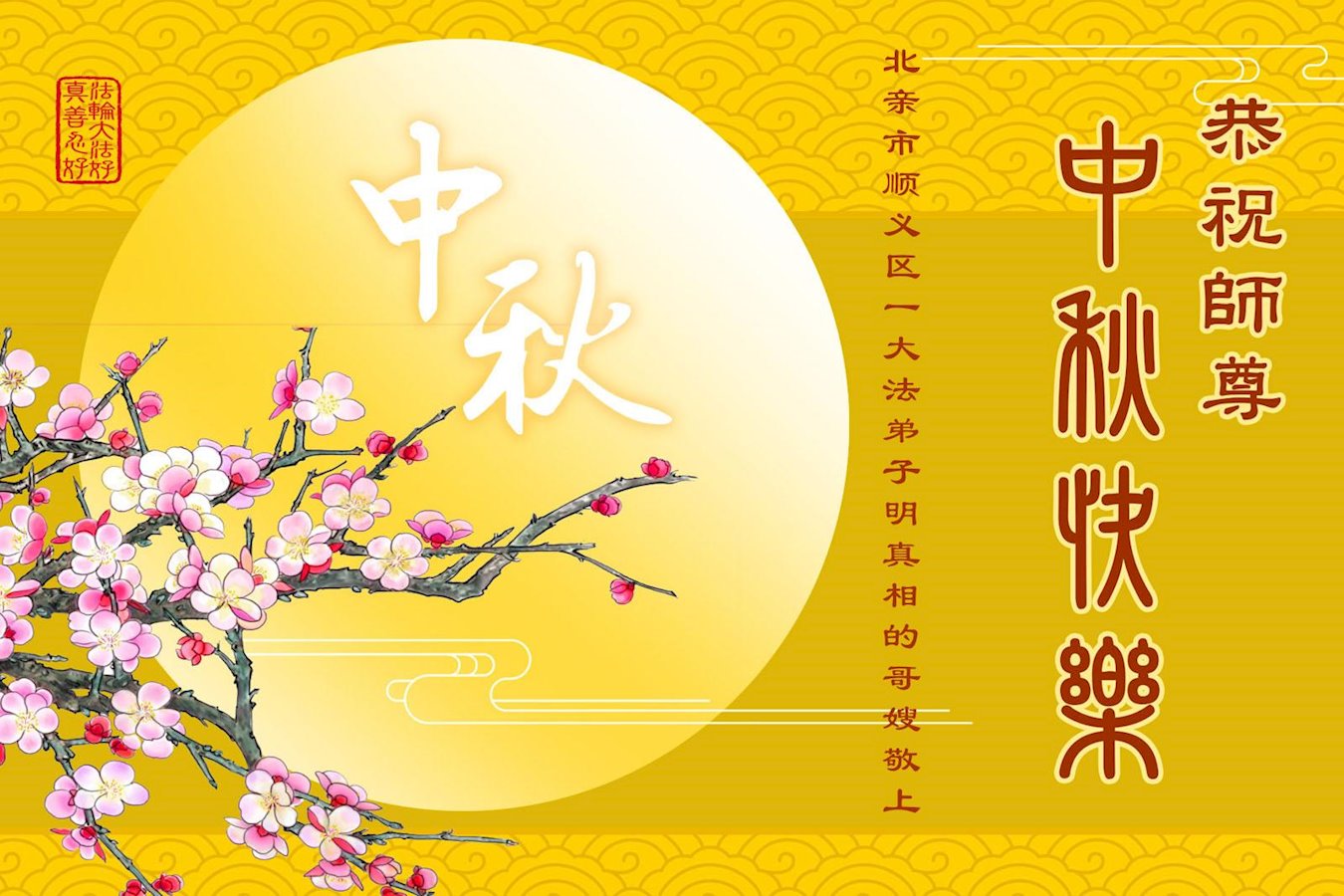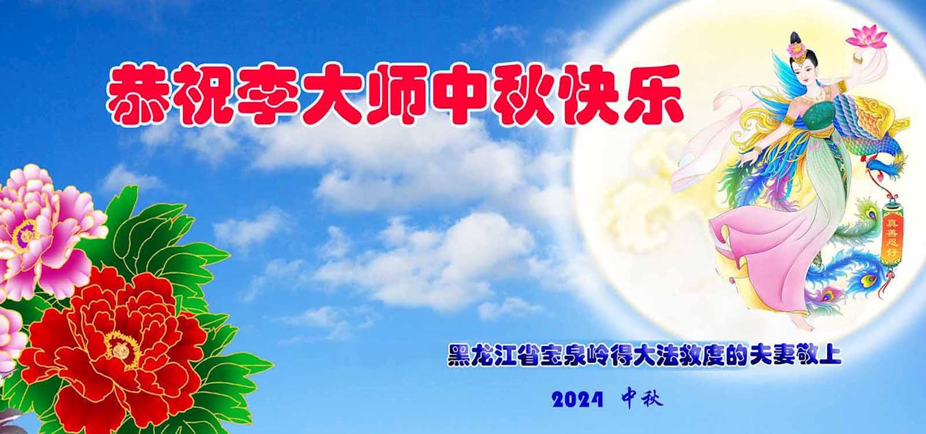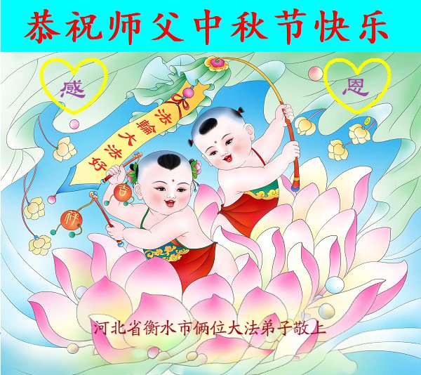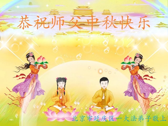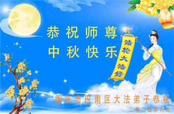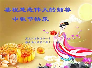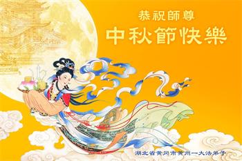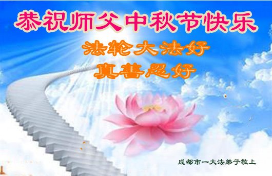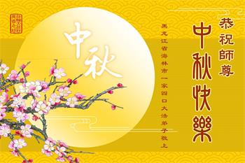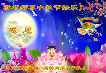 慈悲伟大的师尊好:我们在大陆都曾被邪恶残酷迫害,但我们不仅无悔,且深知能做师父的弟子是我们最大的荣耀与幸福。随师正法、救度众生是我们此生的意义与重任。弟子一定尽心、尽力去做,不负师尊的期望,不负众生的盼望。遥祝慈悲伟大的师尊中秋快乐!盼望师尊早日回大陆。
