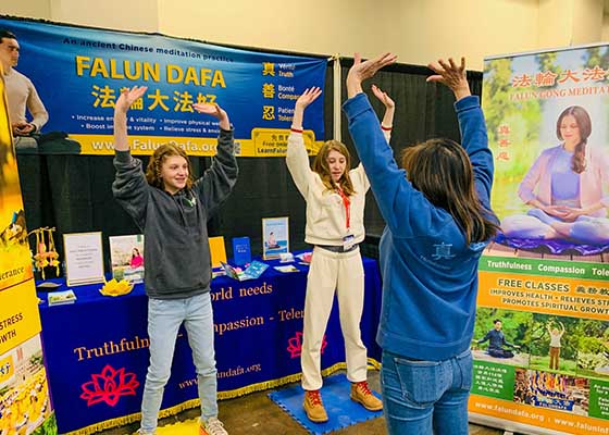 一月十七日至十九日,多伦多木工展在当地的国际中心举行。法轮功展位在会场格外亮眼,吸引许多人驻足观看,了解信息,现场学功。