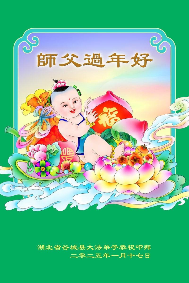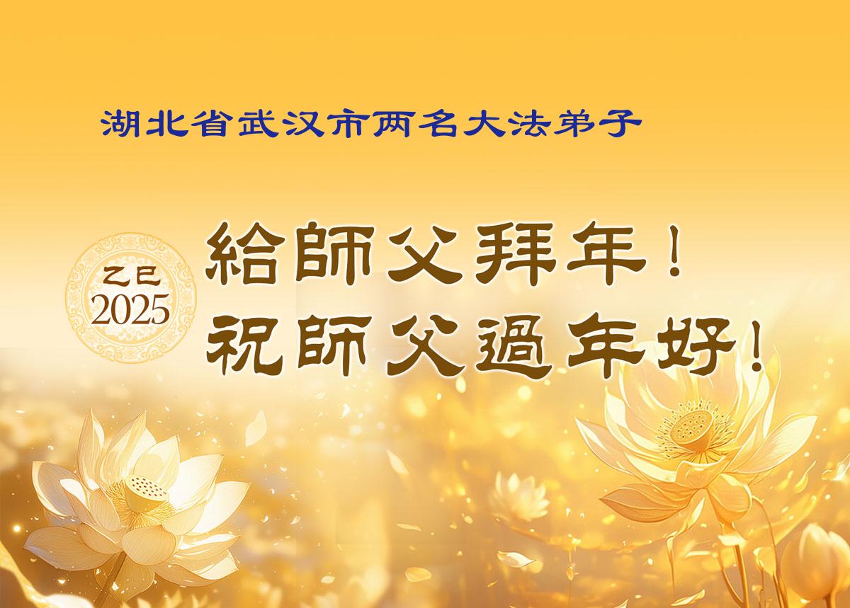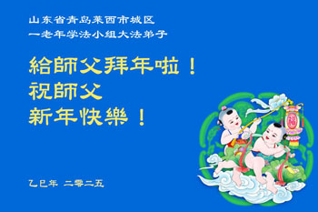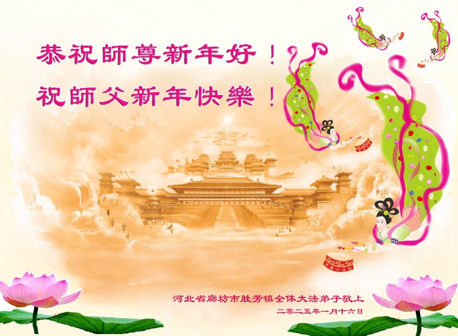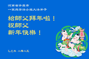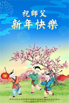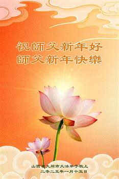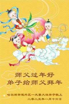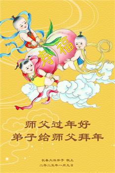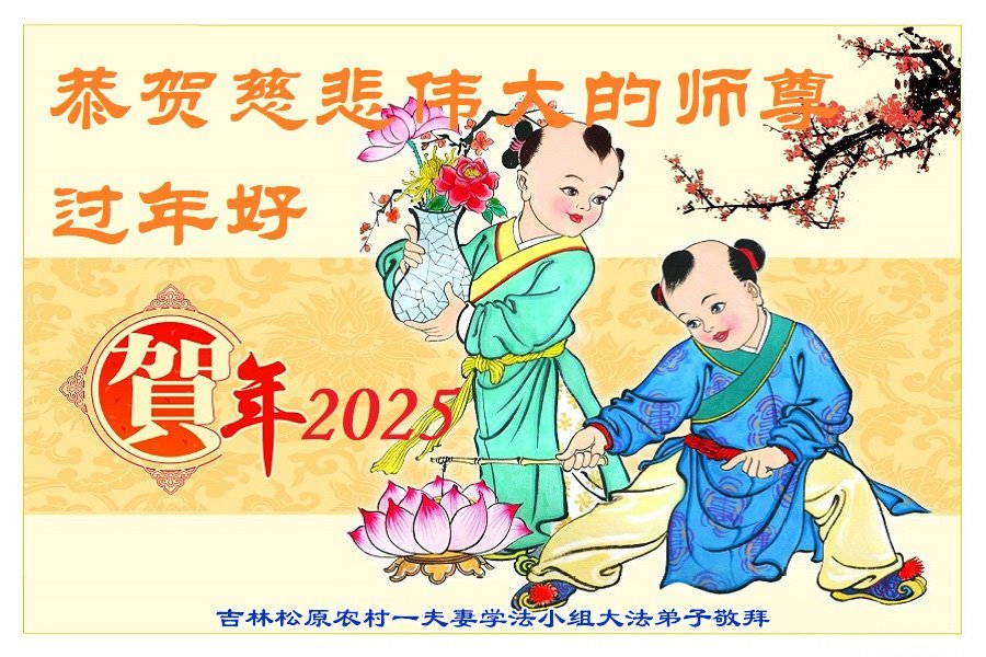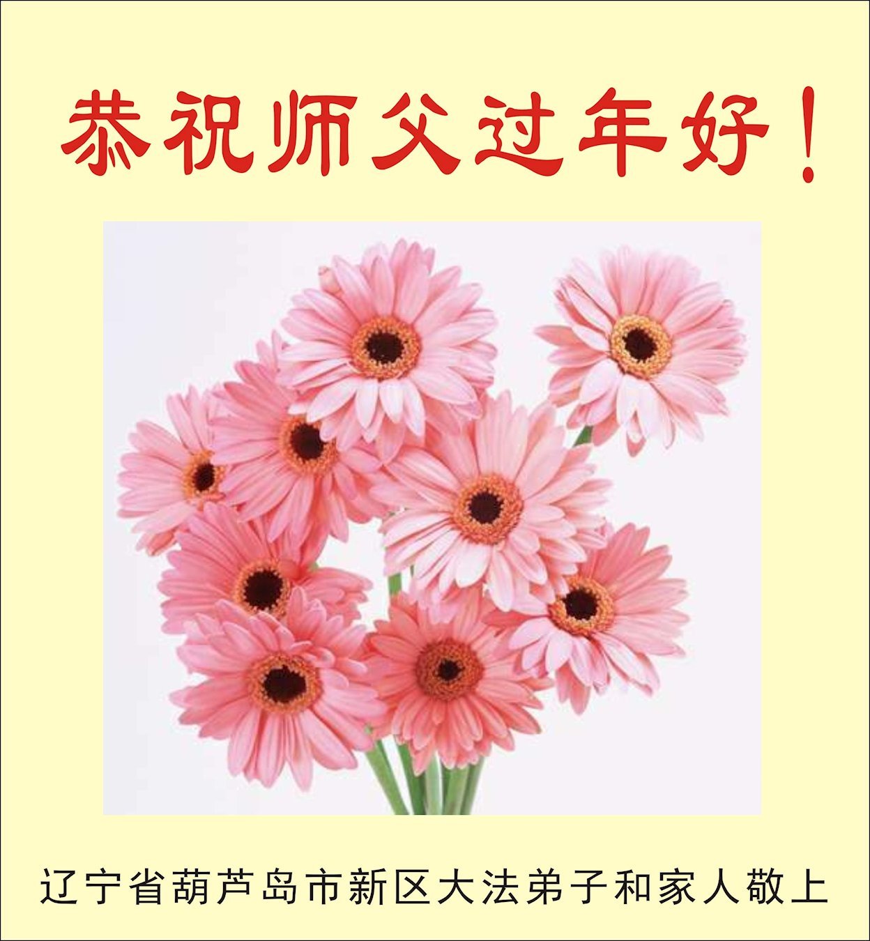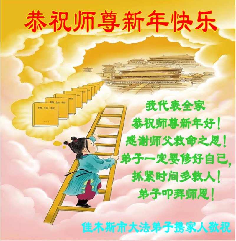 感恩师父的慈悲救度!感恩师父将我们从地狱中捞出洗净,引领我们走上一条返本归真之路。在新年到来之际,我们全家大法弟子及新学员(共6人)给慈悲伟大的师尊拜年:师父过年好!师父您辛苦了!
