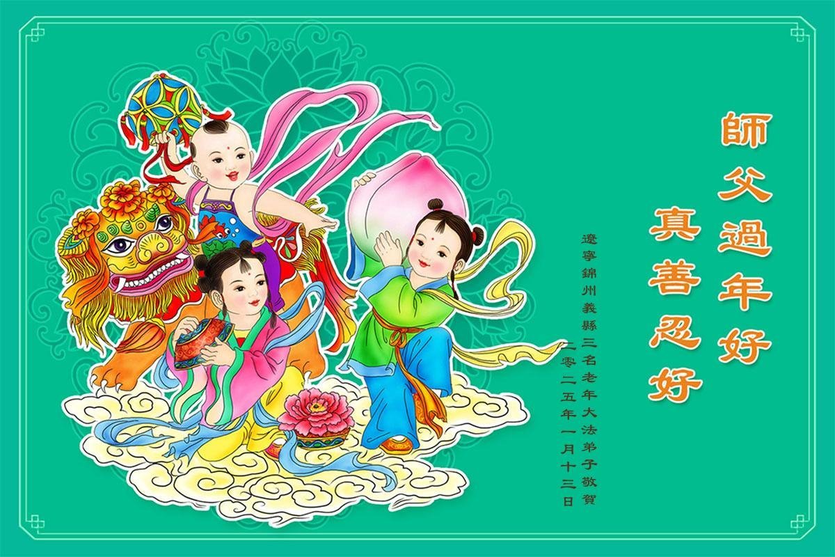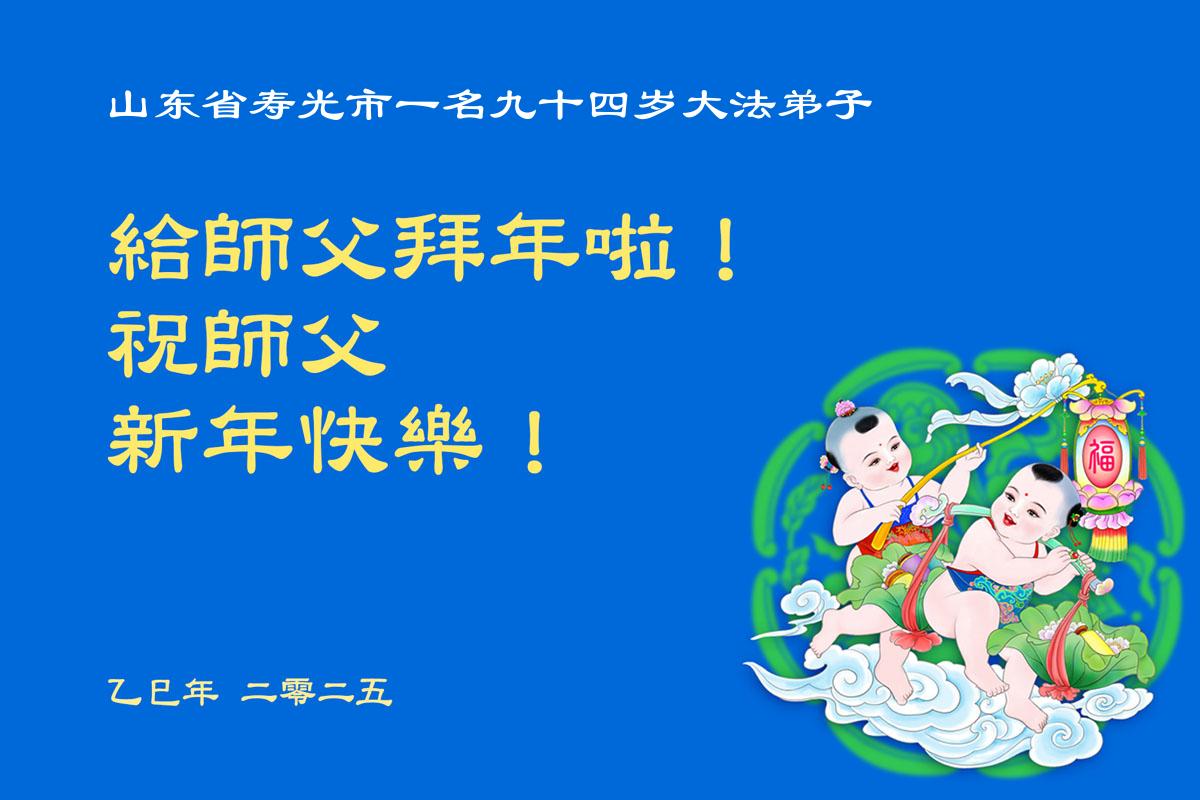 我今年八十四岁,是得法四年的新学员。我身上几种难治的病都好了。我这么大岁数了,师父为我清理身体、祛病,我真心感谢师父救命之恩!我们全家人祝师父过年好!