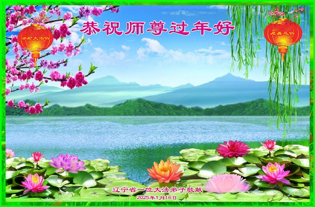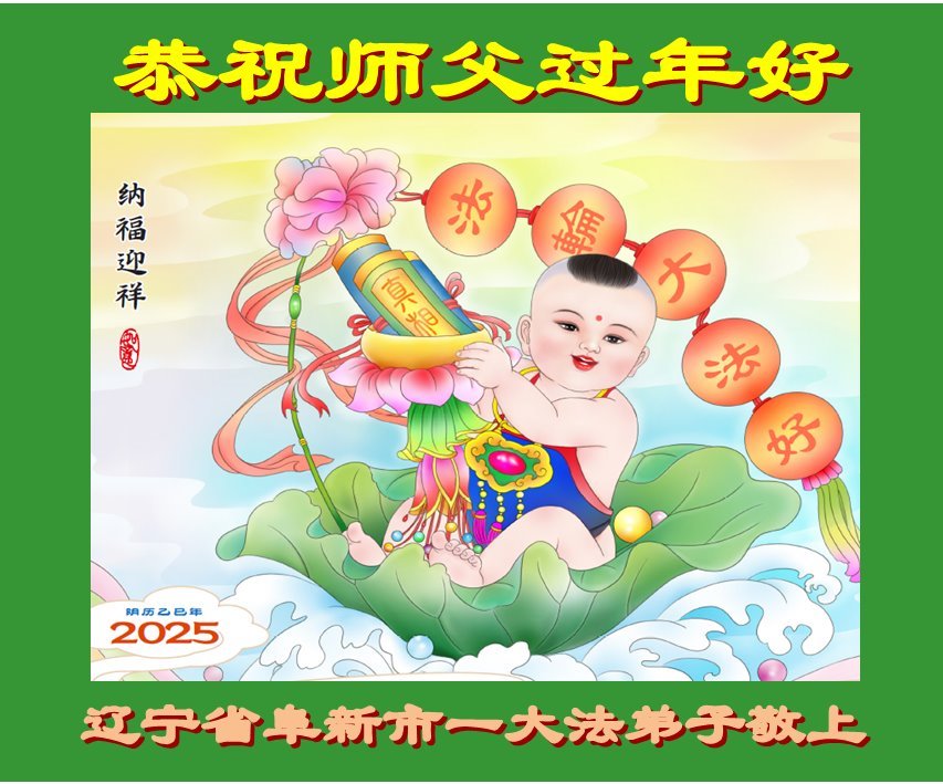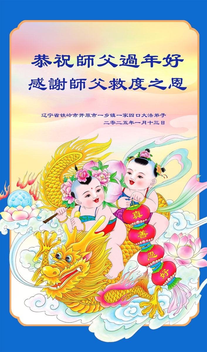 我是辽宁省凌源市农民,也是一名新学员,我带领我全家人给师父送上新年祝福,恭祝慈悲伟大的师父新年快乐!
