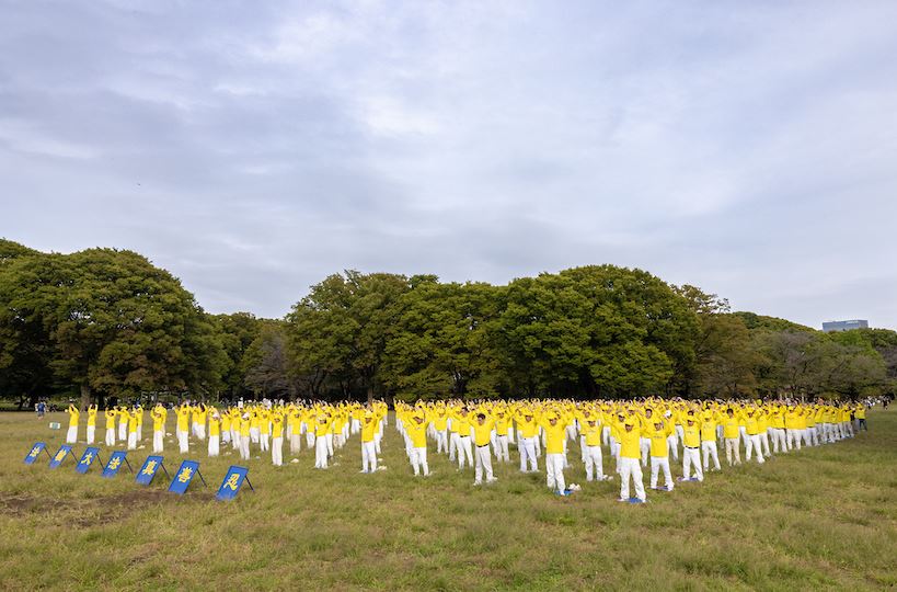 图1~4:二零二五年十月十二日,法轮功学员来到东京代代木公园大炼功