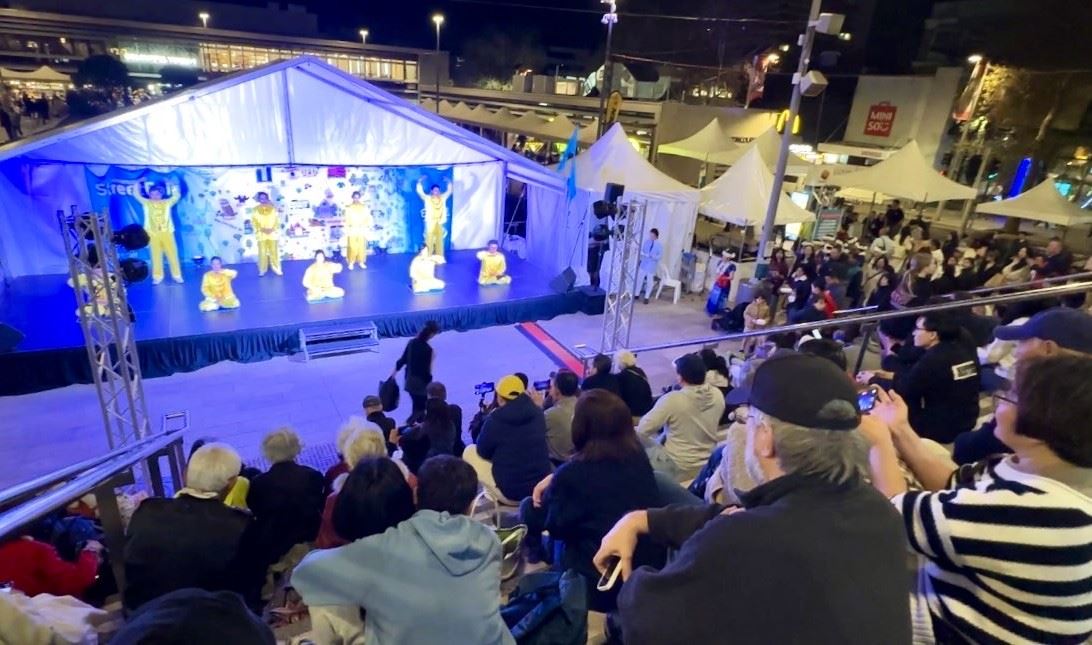 法轮功学员还在舞台上表演了优雅的中华民族的传统舞蹈,受到观众的欢迎。