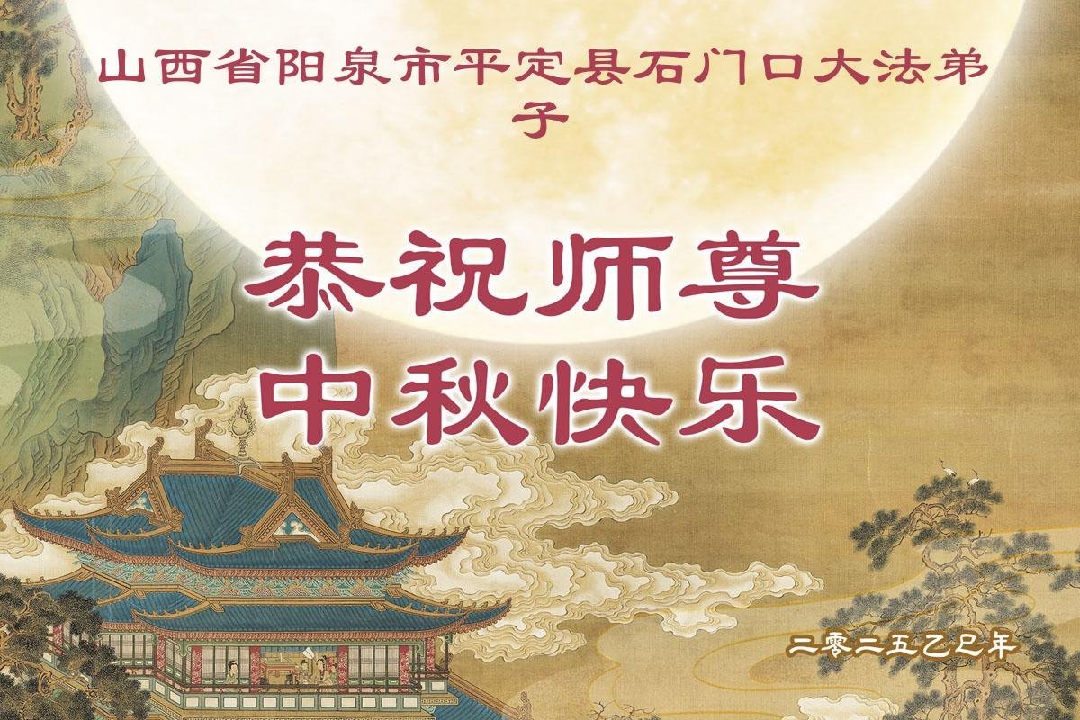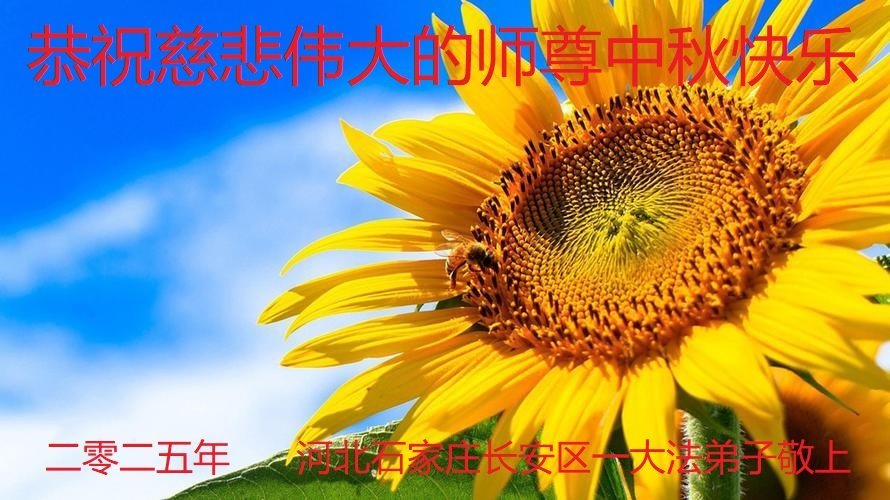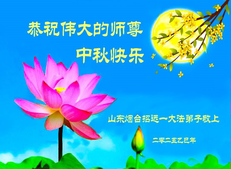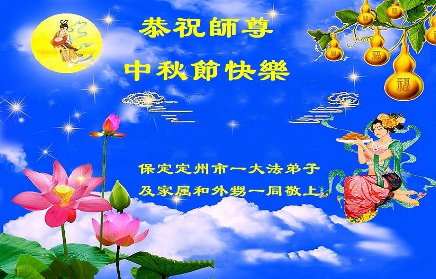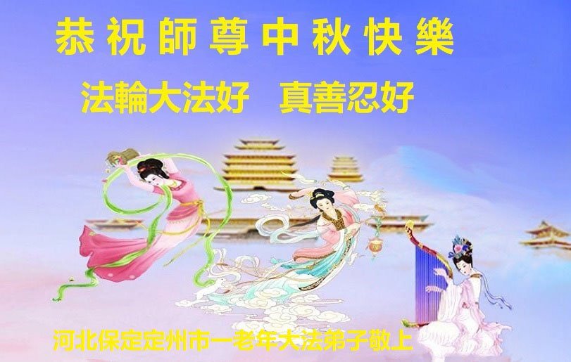 师尊您辛苦了!阖家团圆的中秋佳节又来临了。我们想念师尊,盼望早日见到师尊。在二十多年的修炼路上,是慈悲伟大的师尊牵着我们的手,一步步的走到了今天,师尊为我们的巨大付出和承受,我们是根本无法想象的,师尊的洪恩是用人类的语言无法表达的。弟子只有一颗坚定的心,谨遵师尊教诲,在所剩不多的时间里做好三件事,走好修炼的路,完成大法弟子的使命。深深叩拜师尊的救度之恩!