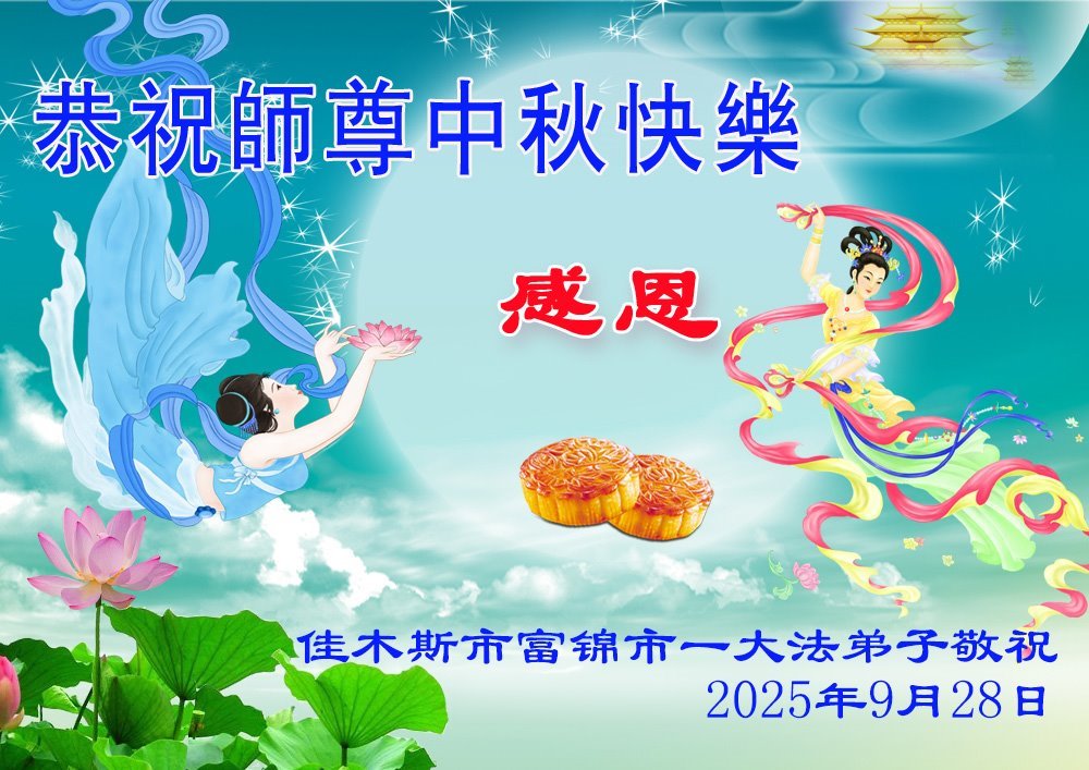 <英文版: https://en.minghui.org/html/articles/2025/10/4/230420.html>加拿大魁北克法轮功学员恭祝师父中秋节快乐