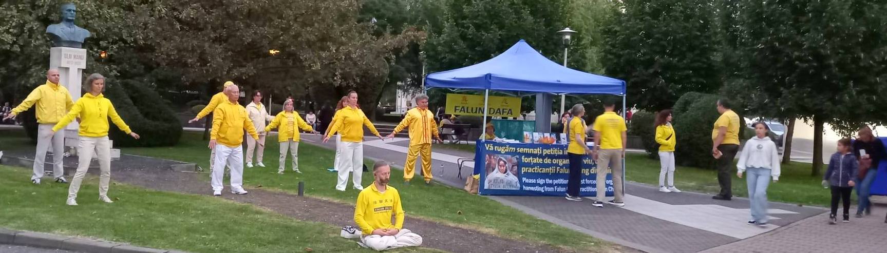 九月十九日(星期五)上午十一点至晚九点,学员们在马拉酒店附近的尤利乌·马纽雕像(the Statue of Iuliu Maniu)附近设立了信息展位,并于下午十二点三十分至三点参加了游行。九月二十日(星期六)上午十一点至晚九点,信息日活动继续进行。星期天上午九点至十一点,学员们在雷吉纳玛丽亚公园(Regina Maria Park)的法轮功炼功点演示功法,并于中午十二点至晚上九点在尤利乌·马纽雕像附近继续进行信息日活动。