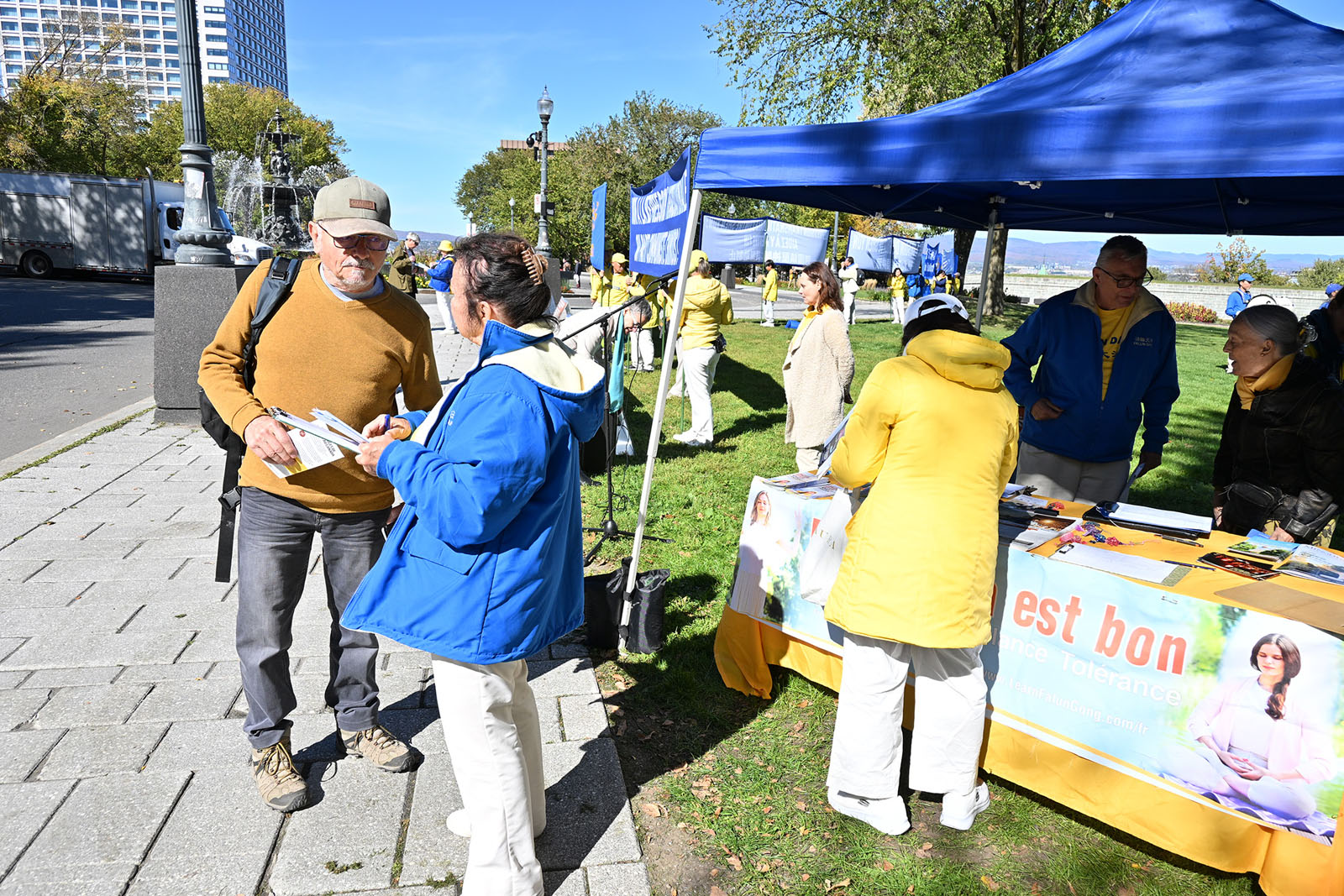 【明慧网二零二五年十月八日】二零二五年十月二日,加拿大魁北克市部分法轮功学员在国民议会广场举行集会,揭露中共跨国镇压,唤起民众关注。学员们演示法轮功功法,展示真相横幅,还举行了揭露中共迫害的汽车游行,并且为制止中共跨国镇压法轮功的请愿书征集签名。一些民众在请愿书上签名时说:“这种干扰不应该被容忍。”
