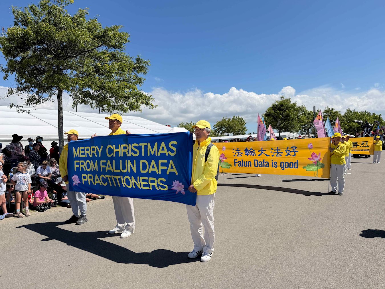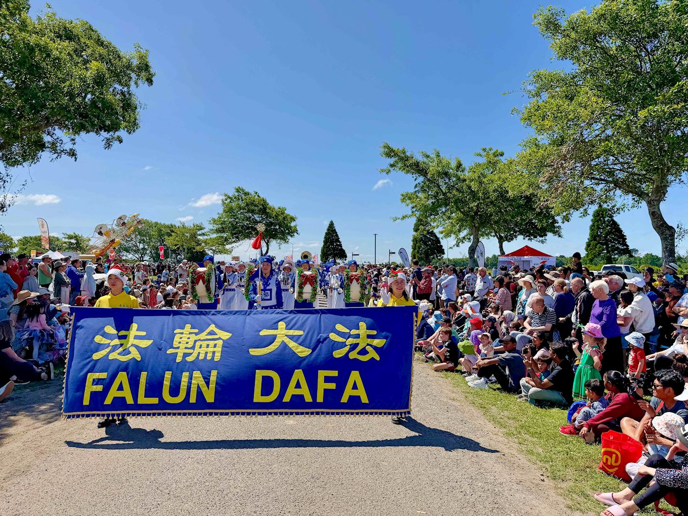 法轮大法团体以明亮的服饰、整齐的队形、雄壮的乐曲、灵动的表演,为现场观众带来一份平和美好的体验,也让真、善、忍的普世价值在节日气氛中温暖人心。他们每到之处,人们欢呼雀跃,鼓掌欢迎,有的人高高地竖起大拇指表示赞赏。