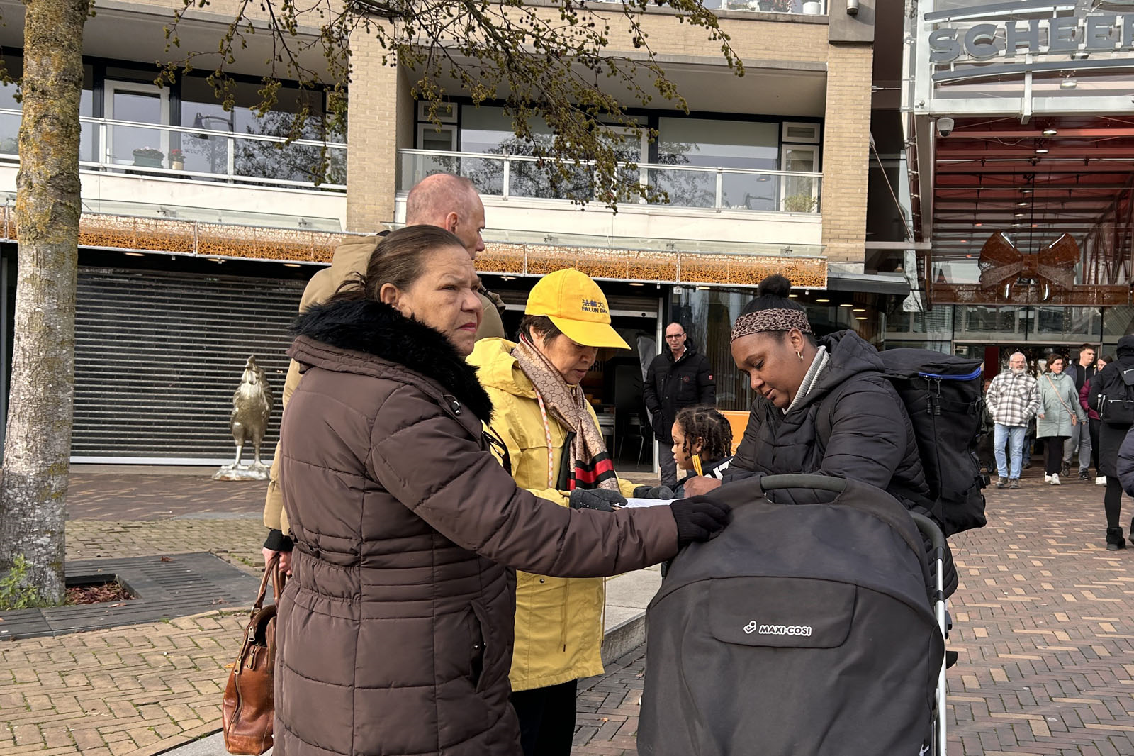 二十二日中午,法轮功学员们在费嫩达尔的高街(Hoogstraat)布置法轮功真相展板,演示法轮功五套功法,向路人发送传单,讲述法轮功在中国遭遇中共长达二十六年的迫害。人们在反对中共活摘法轮功学员器官的征签表上签名,支持法轮功反迫害。