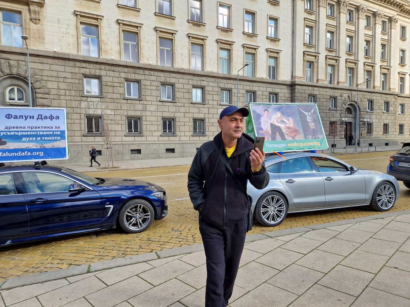 ![]() 图1:二零二五年十二月八日(星期一),保加利亚法轮功学员举办主题为“制止中共为窃取器官而杀害法轮功学员”的车队游行,车队在“权力三角区”停留。 |