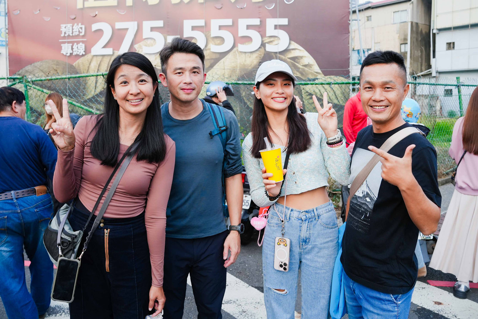 图13:从北部特地南下的陈先生(右一)、谢小姐(左一)和两位友人称赞法轮大法天国乐团。