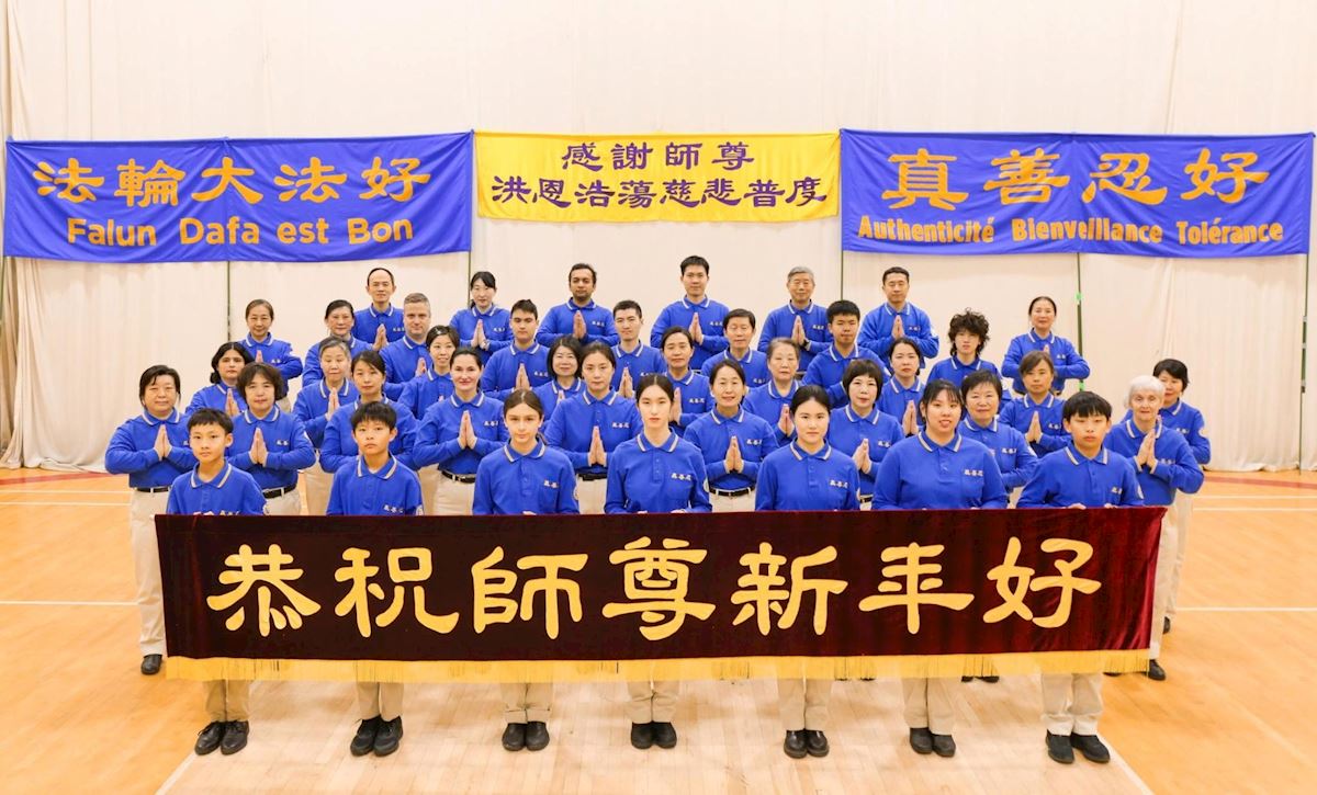 '图1:蒙特利尔法轮功学员恭祝李洪志师父新年好。'