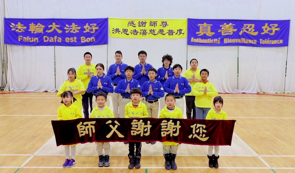 '图4:蒙特利尔法轮大法天国乐团成员恭祝李洪志师父新年好。'