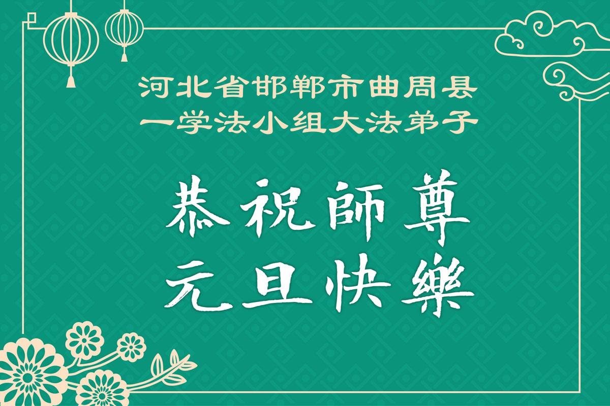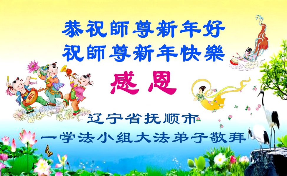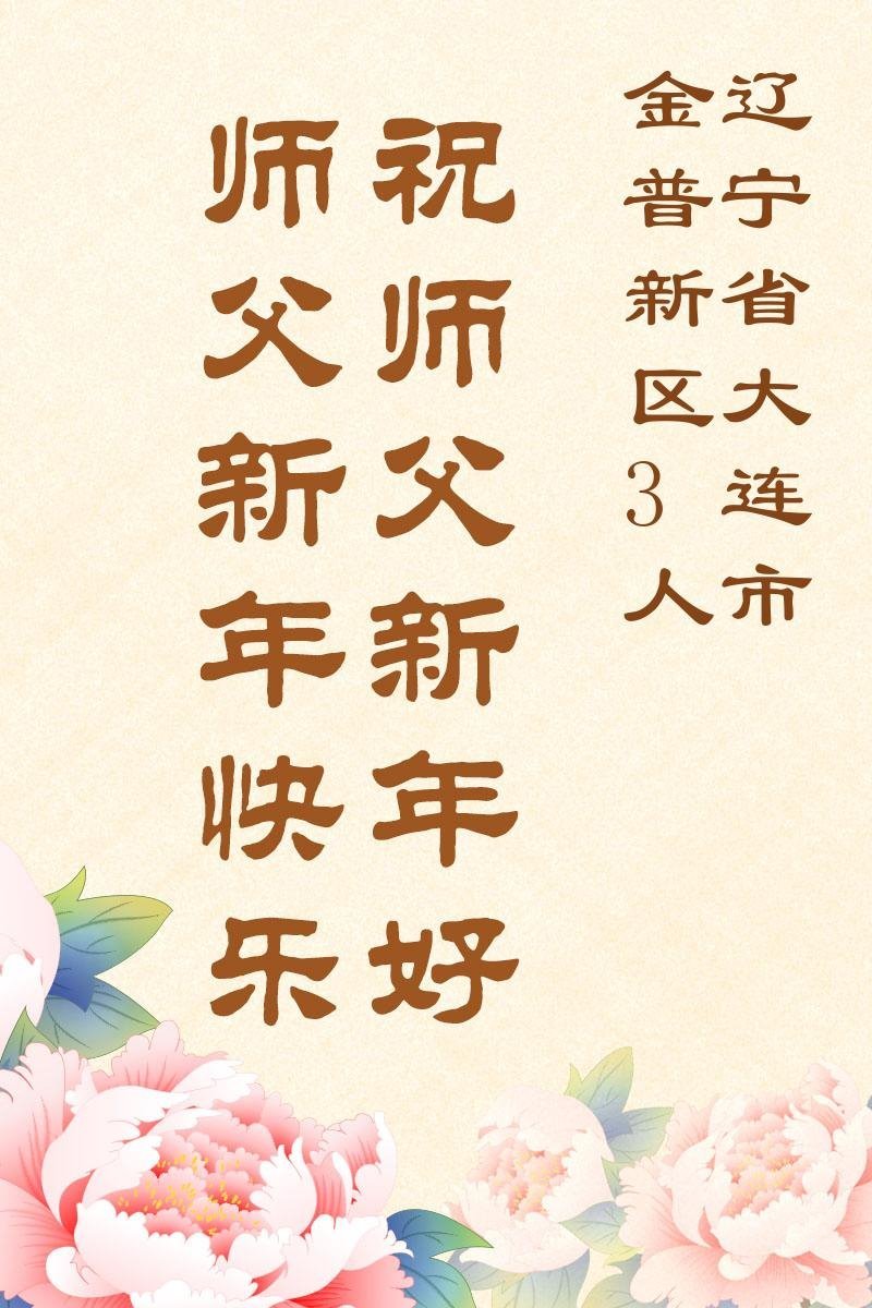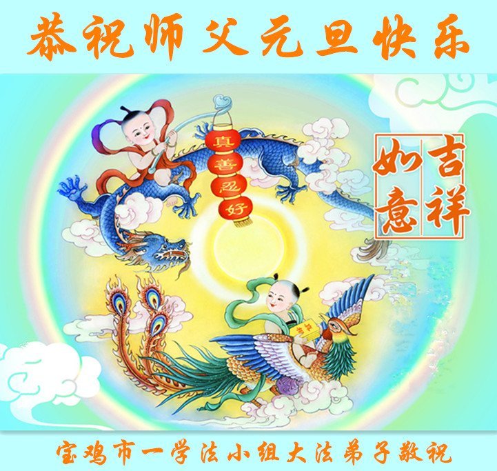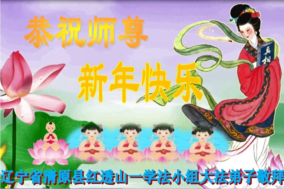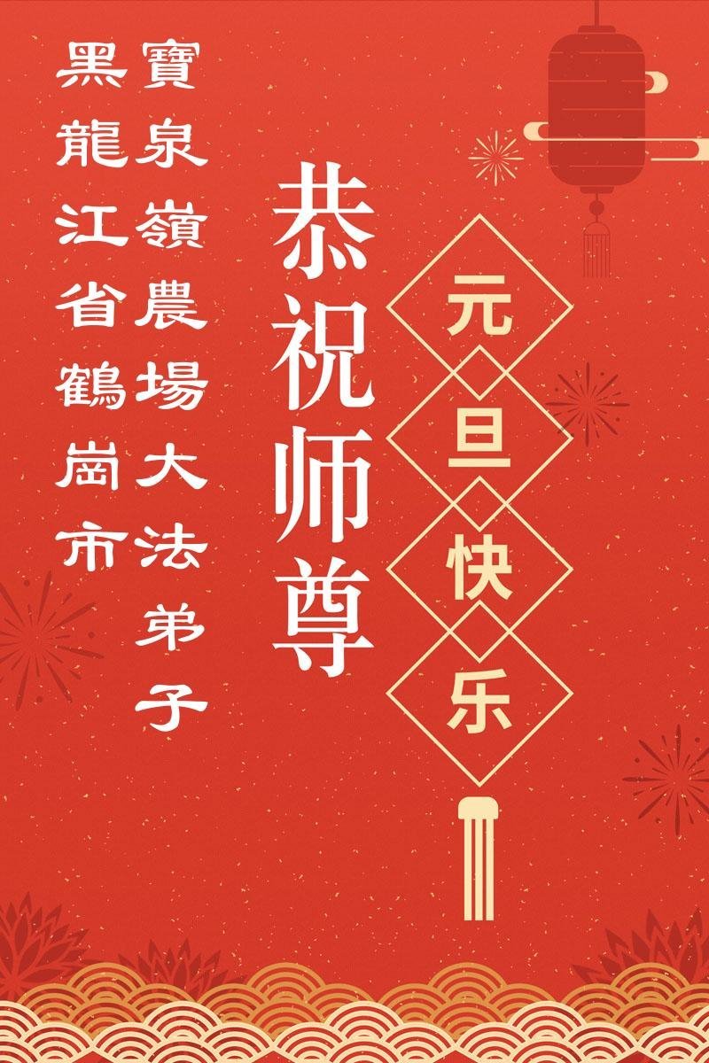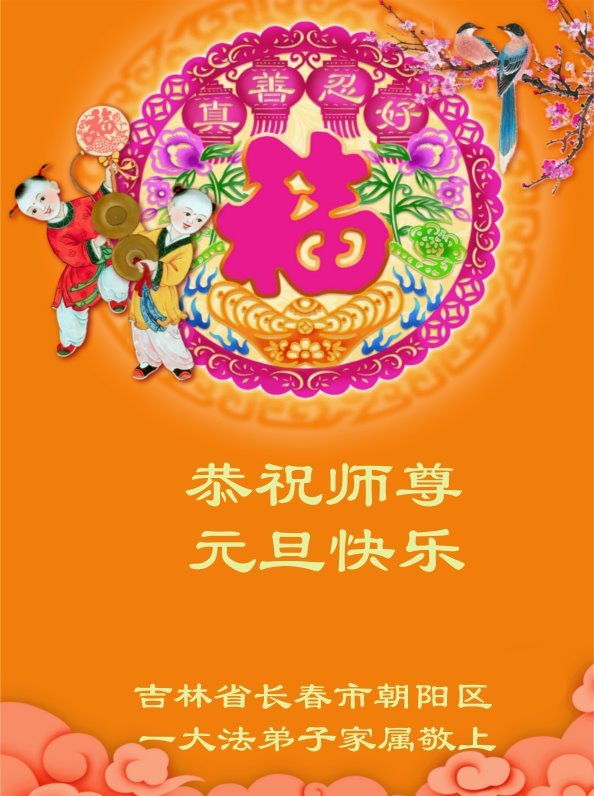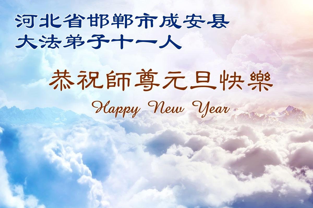 以下是部份来自中国各省、市、地区的学法炼功小组、讲真相小组、资料点大法弟子们敬致师尊的新年贺词贺卡: