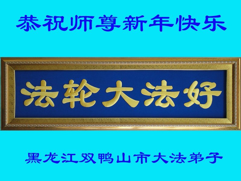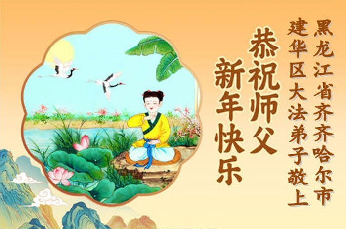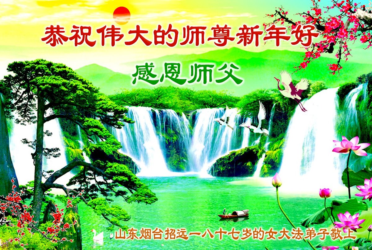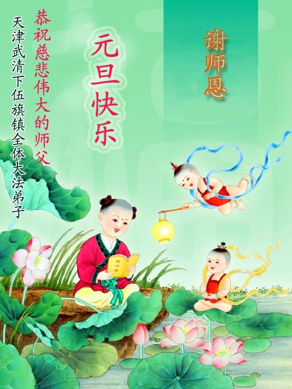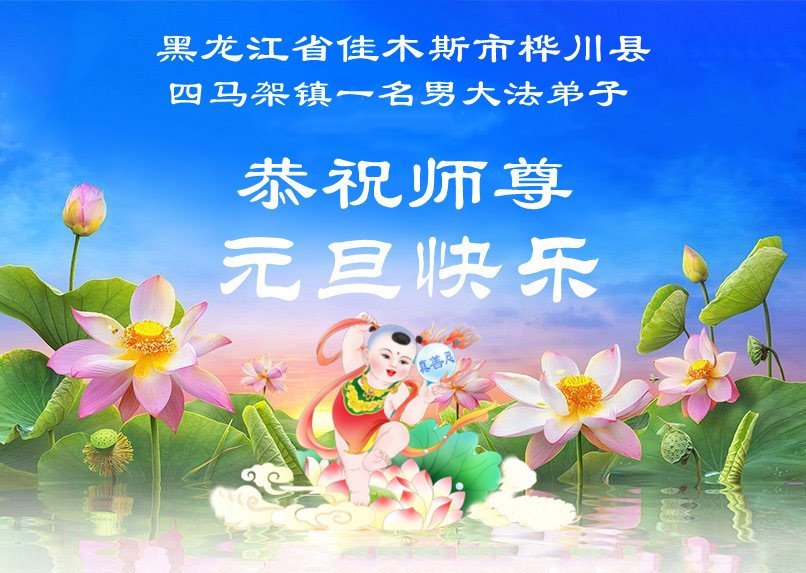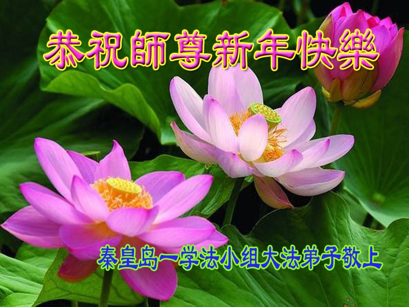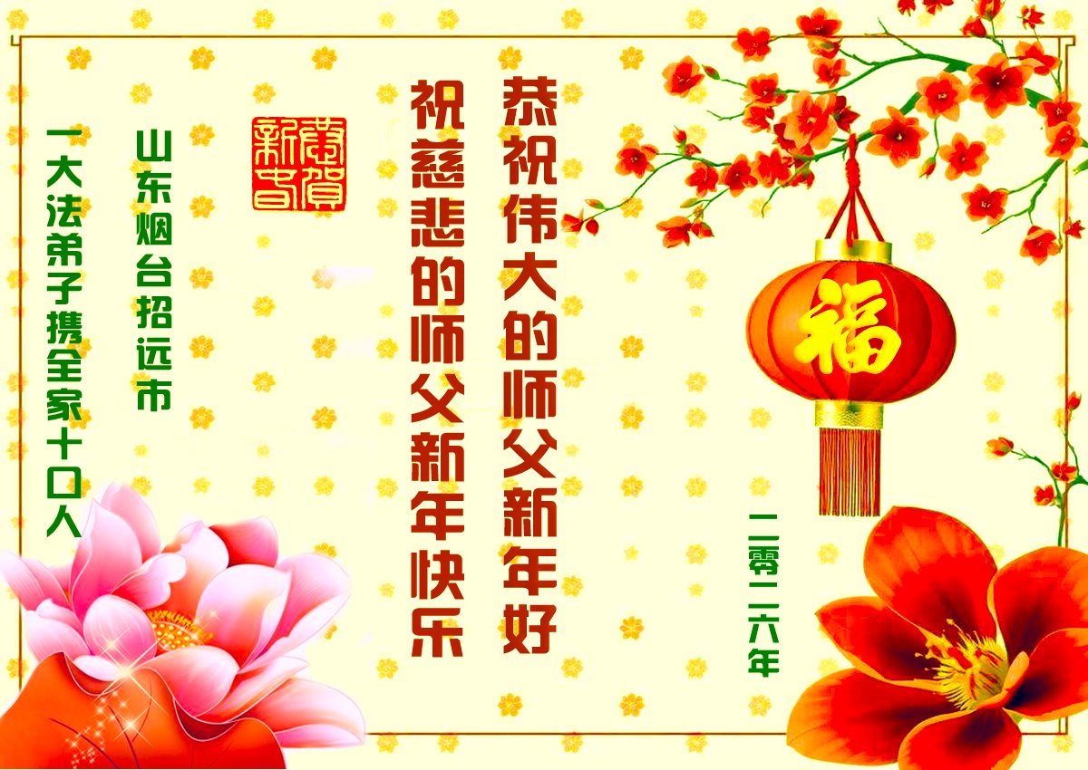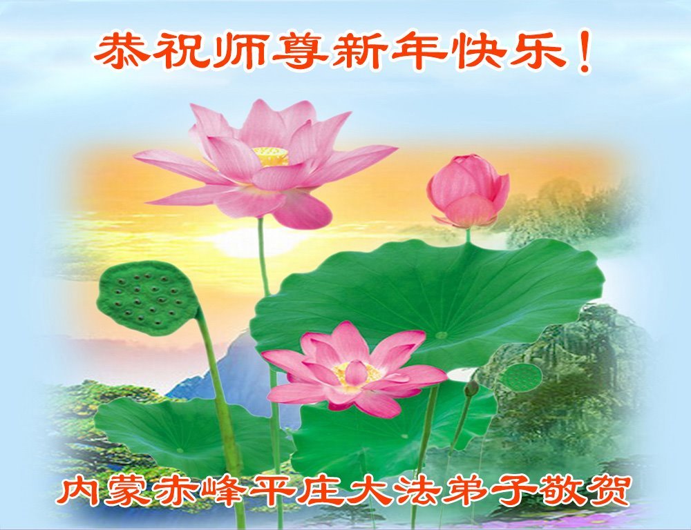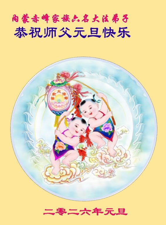 以下是部份来自中国各省、市、地区的学法炼功小组、讲真相小组、资料点大法弟子们敬致师尊的新年贺词贺卡: