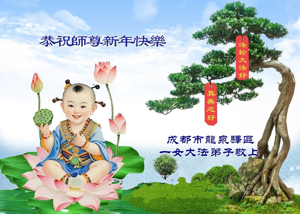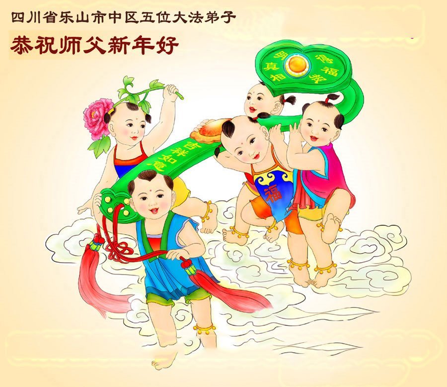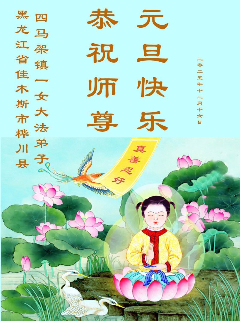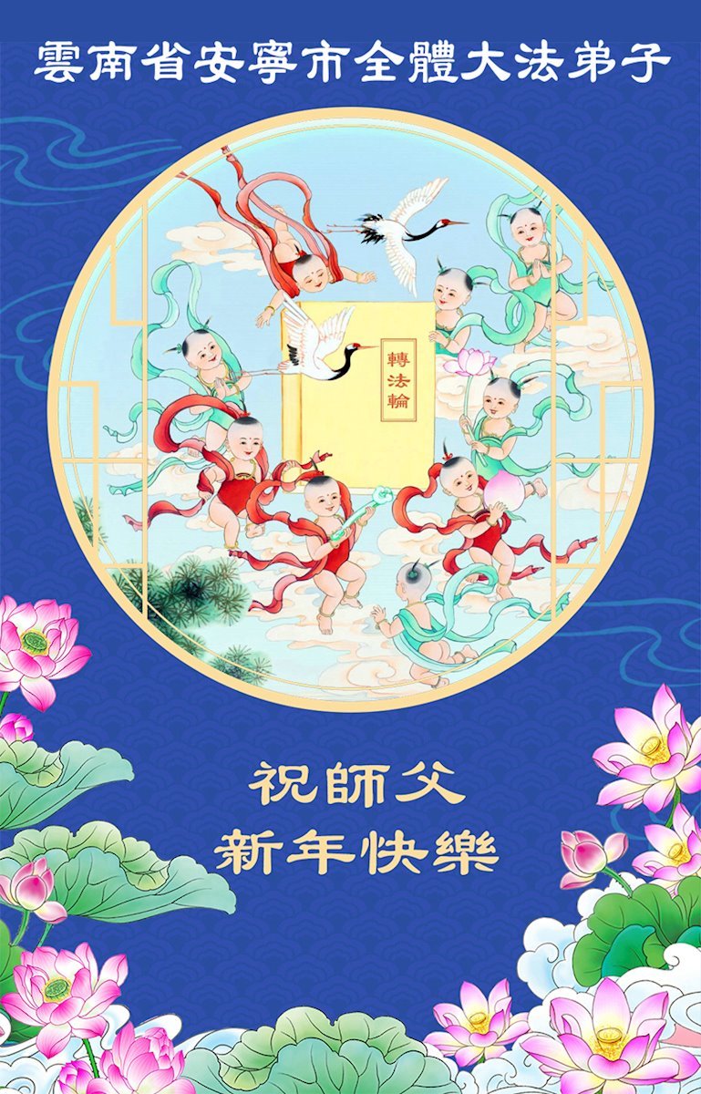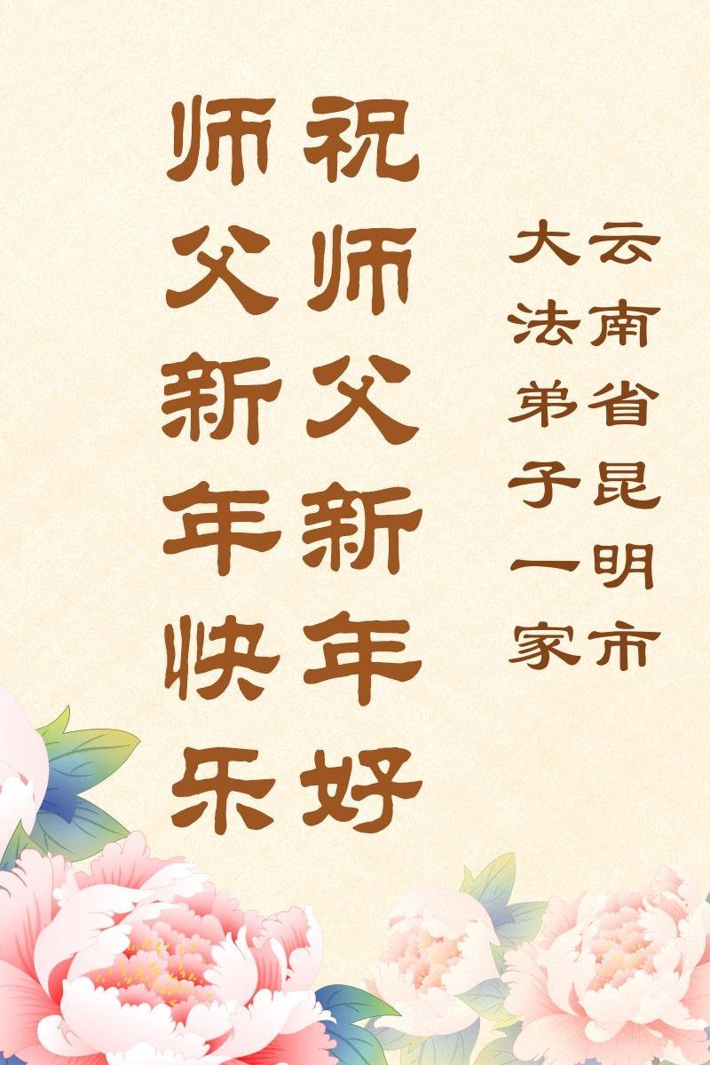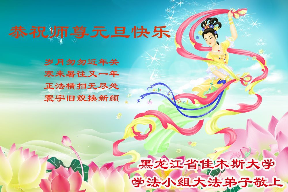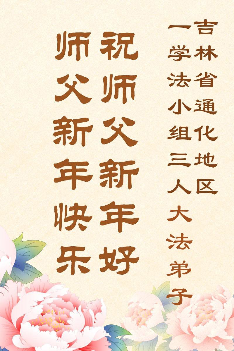 以下是部份来自中国各省、市、地区的学法炼功小组、讲真相小组、资料点大法弟子们敬致师尊的新年贺词贺卡: