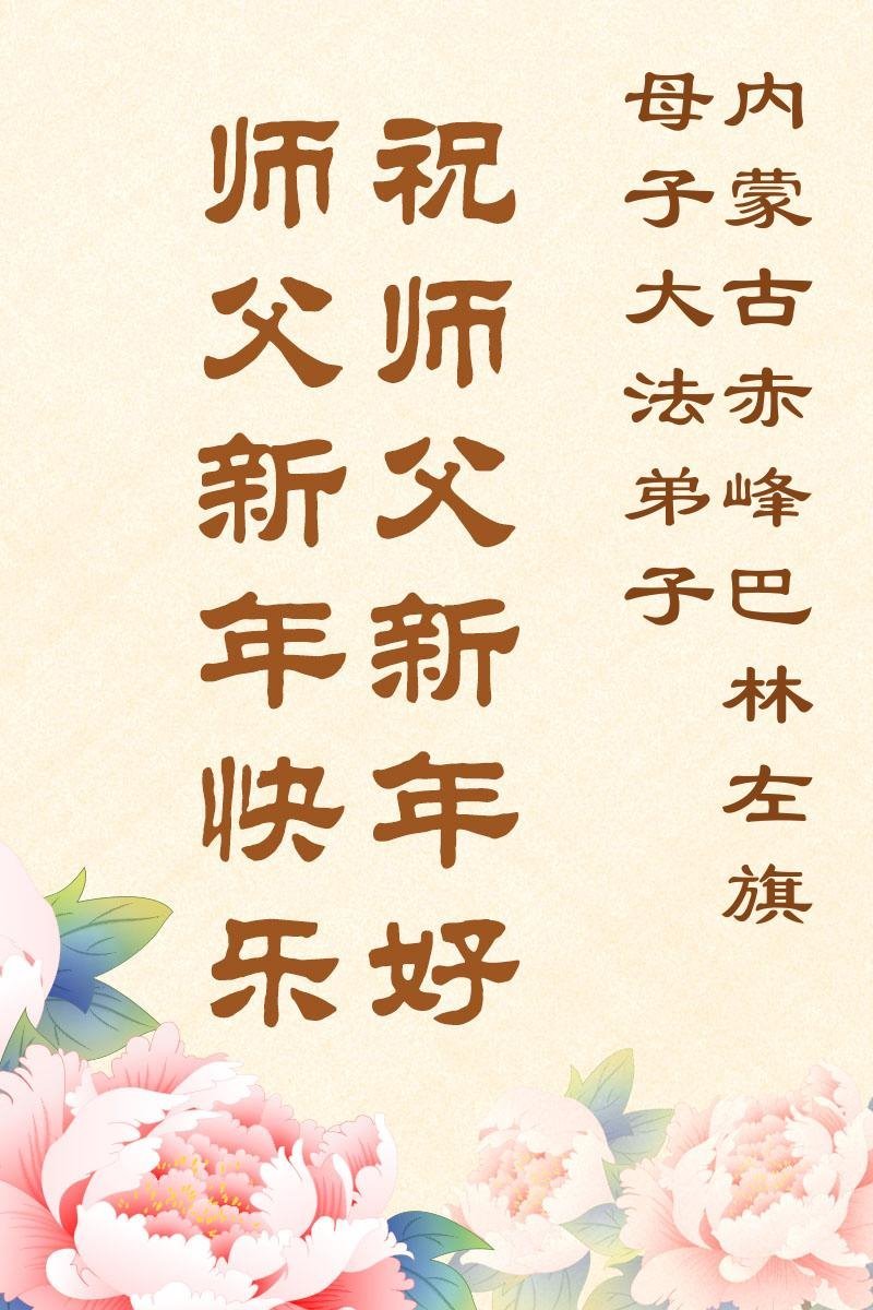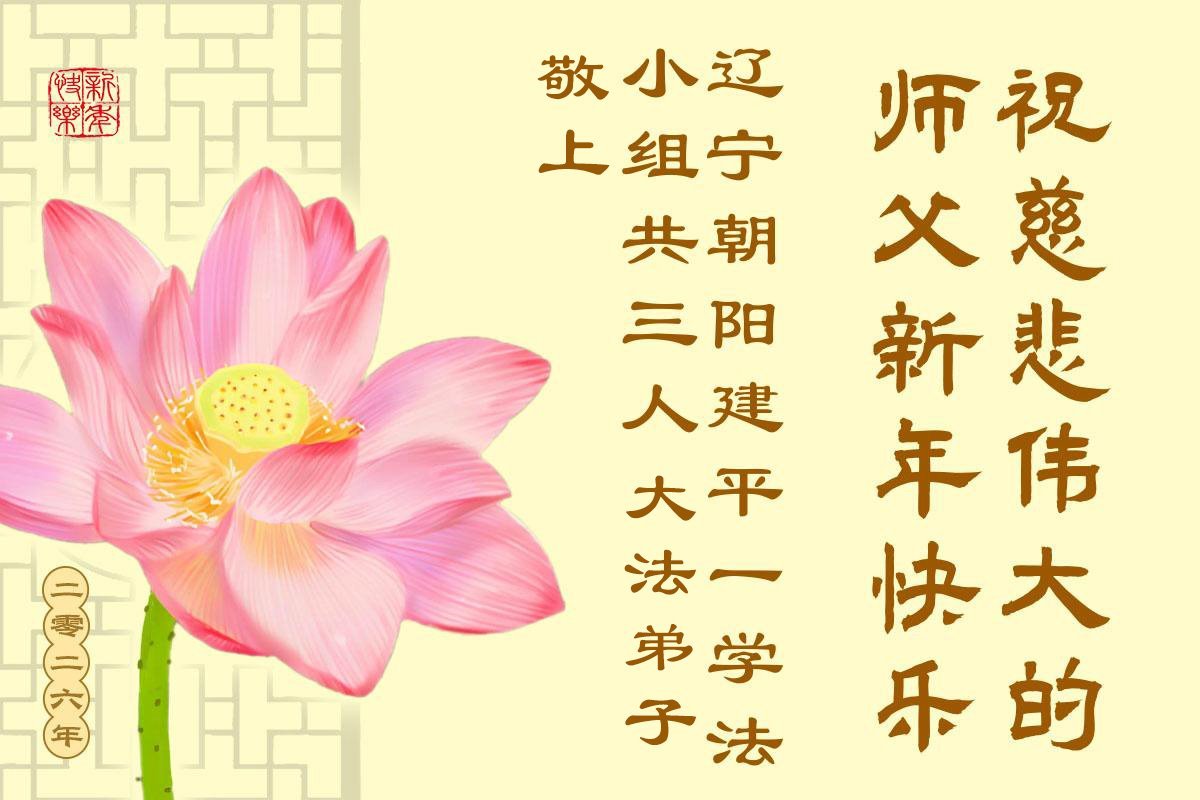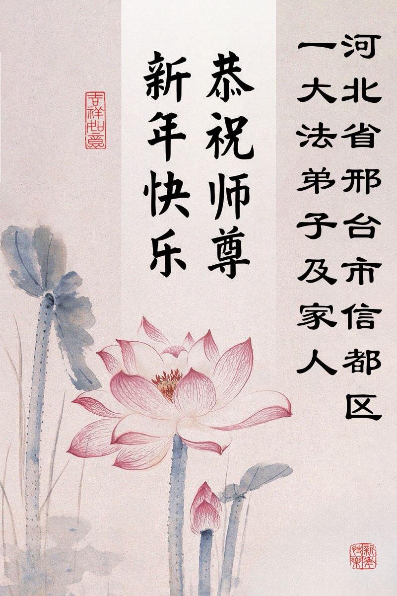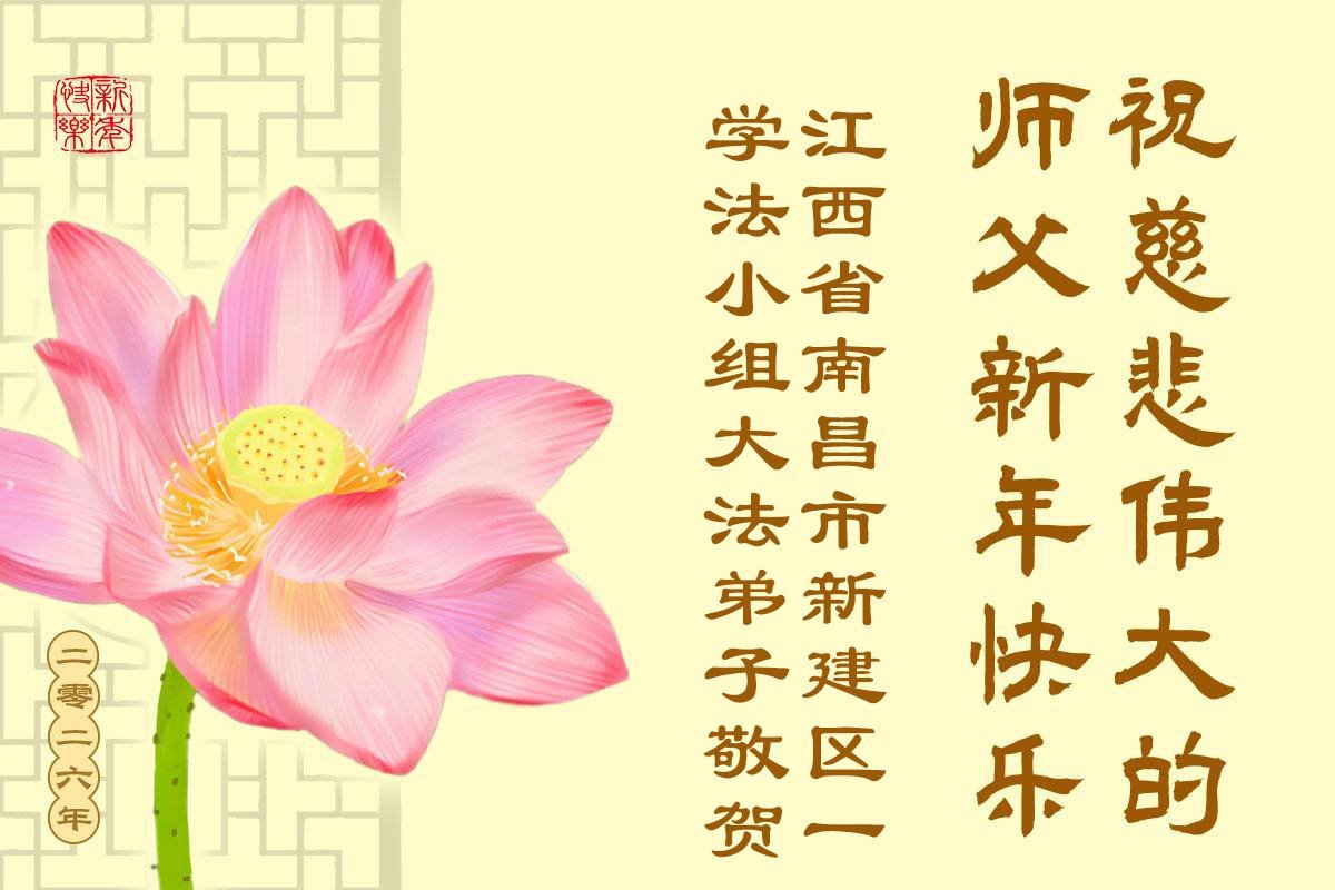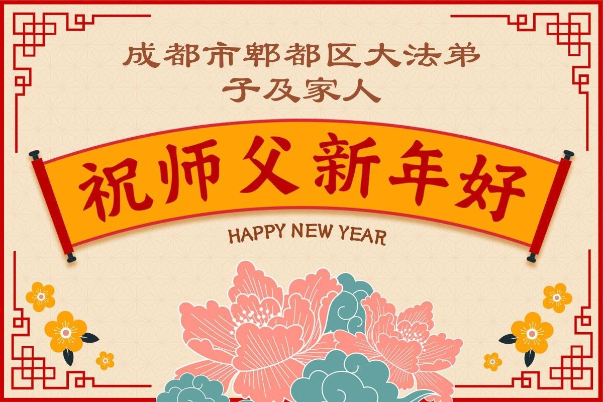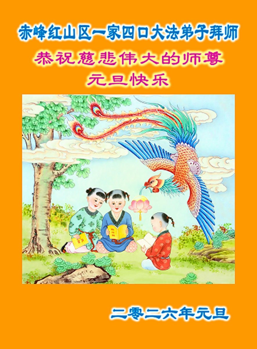以下是部份来自中国各省、市、地区的学法炼功小组、讲真相小组、资料点大法弟子们敬致师尊的新年贺词贺卡:
