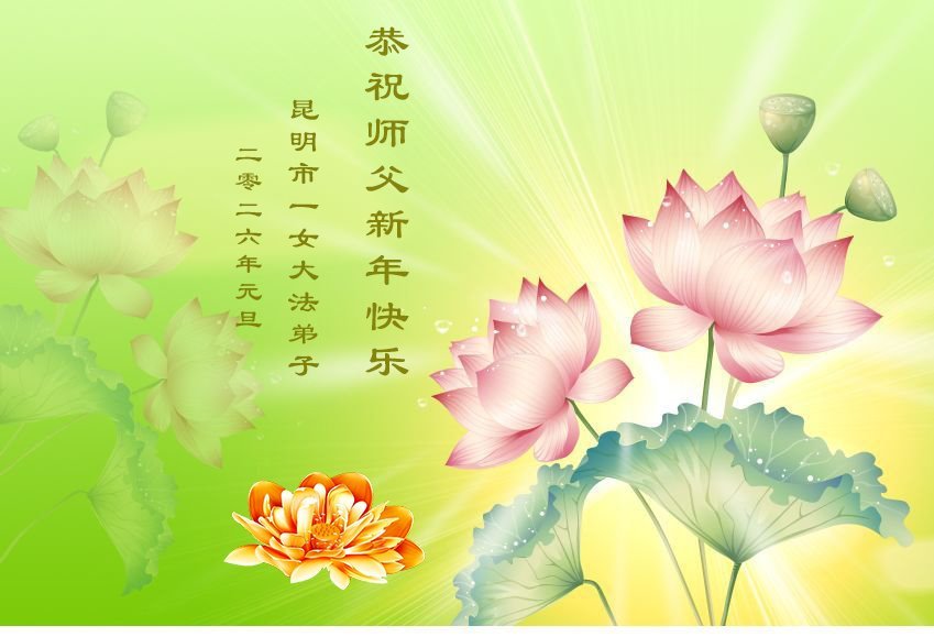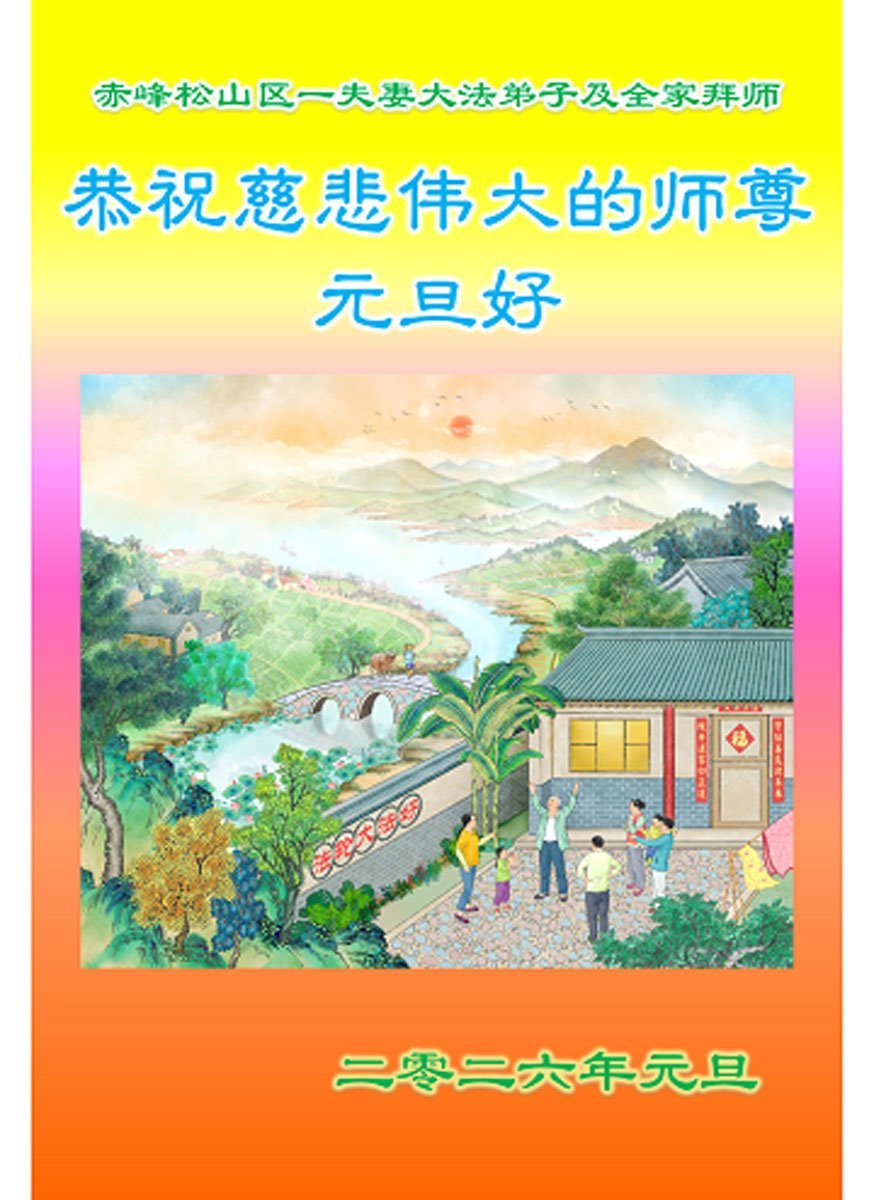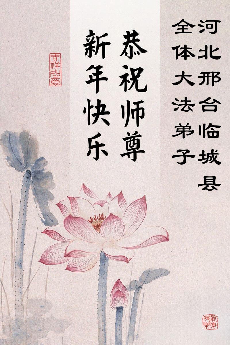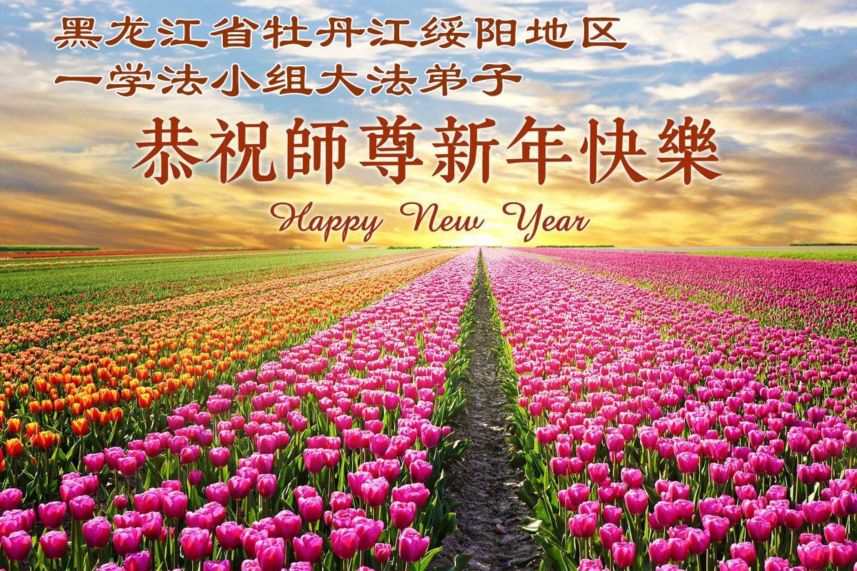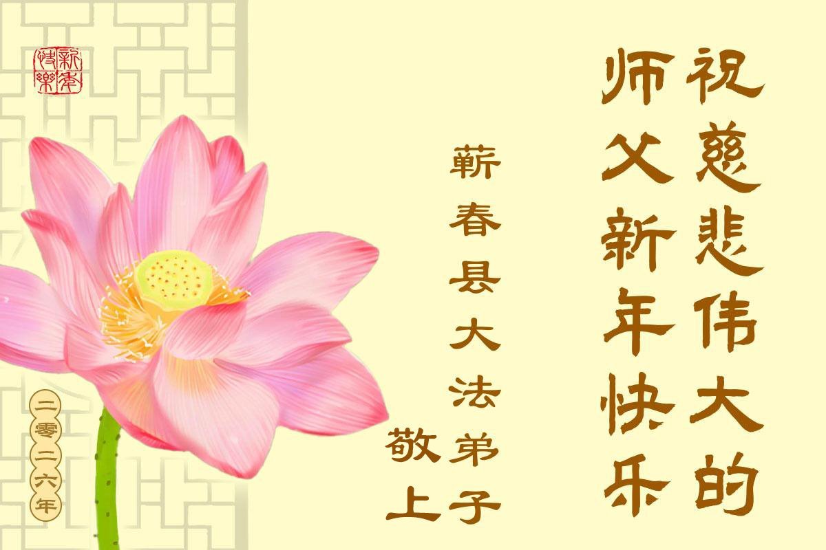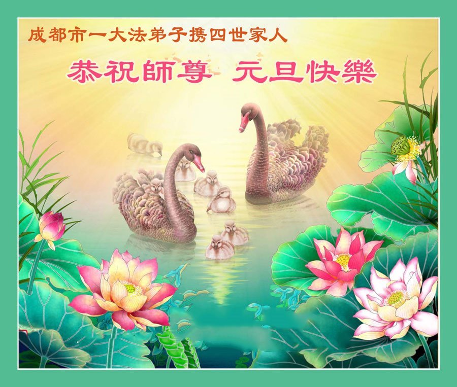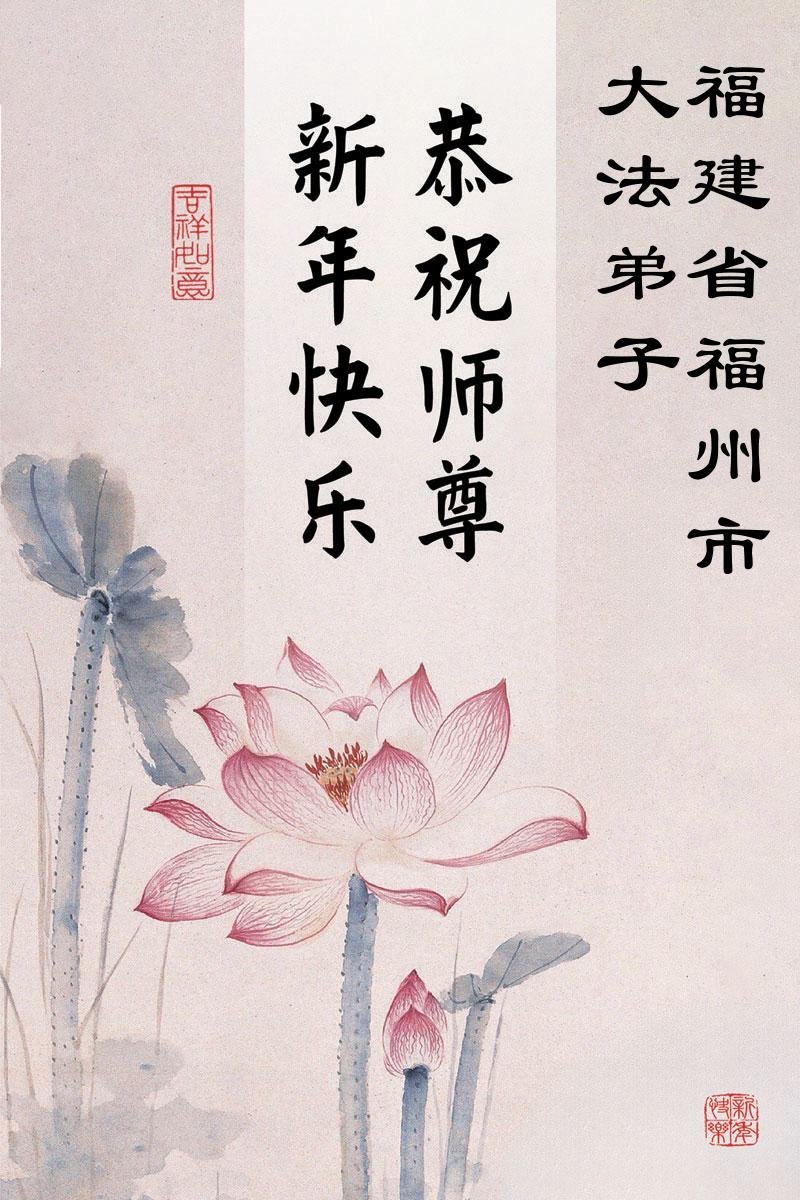 以下是部份来自中国各省、市、地区的学法炼功小组、讲真相小组、资料点大法弟子们敬致师尊的新年贺词贺卡: