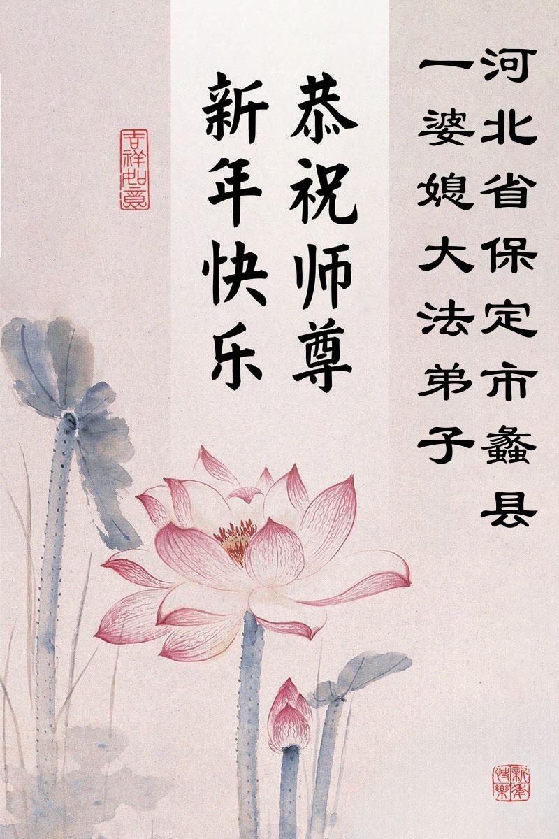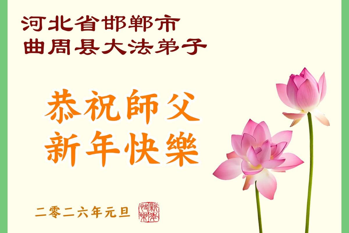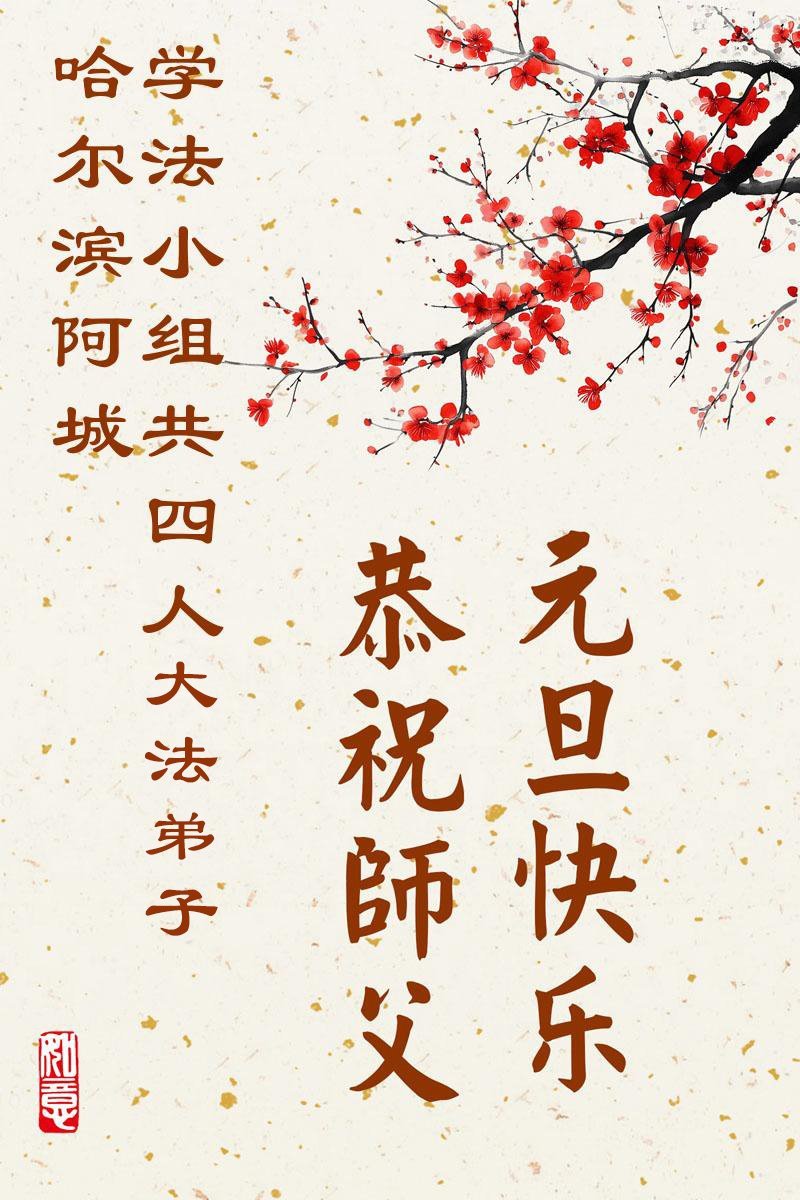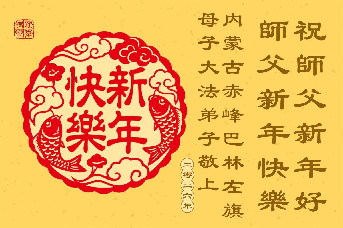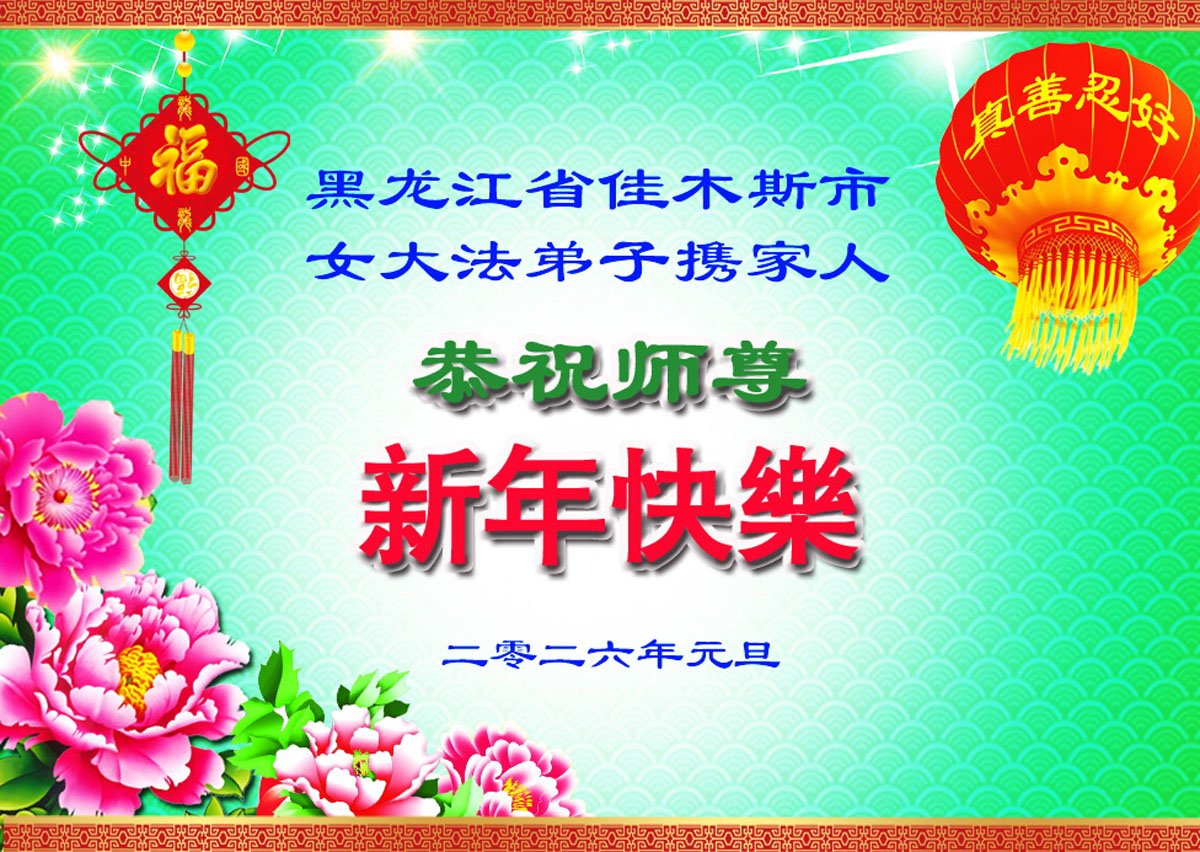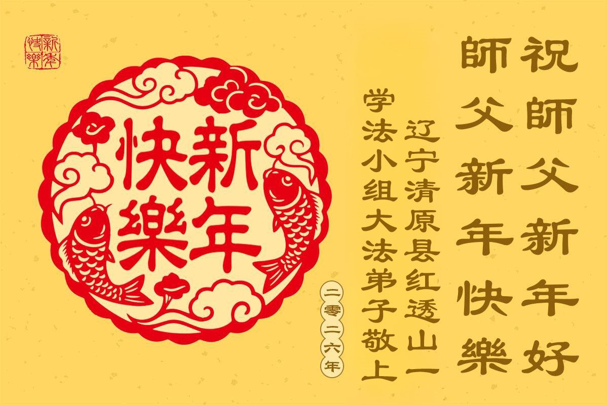 以下是部份来自中国各省、市、地区的学法炼功小组、讲真相小组、资料点大法弟子们敬致师尊的新年贺词贺卡: