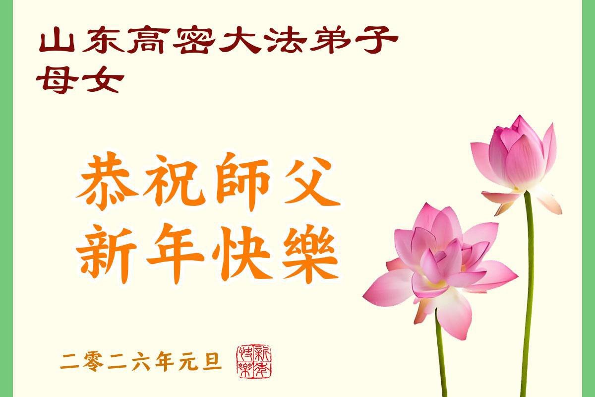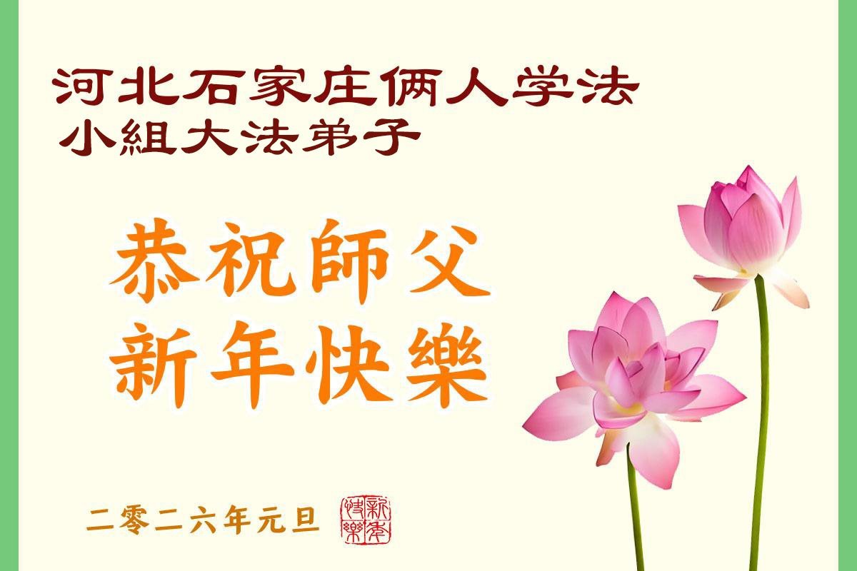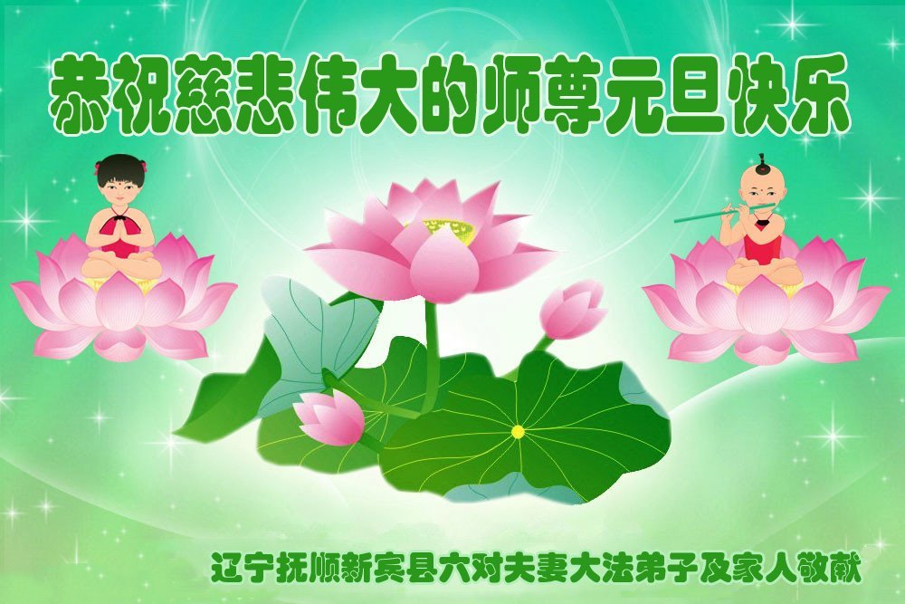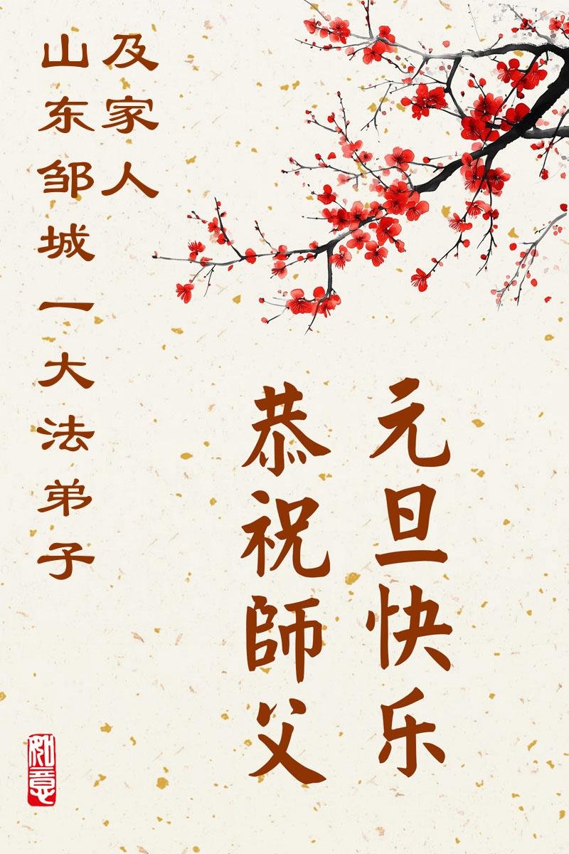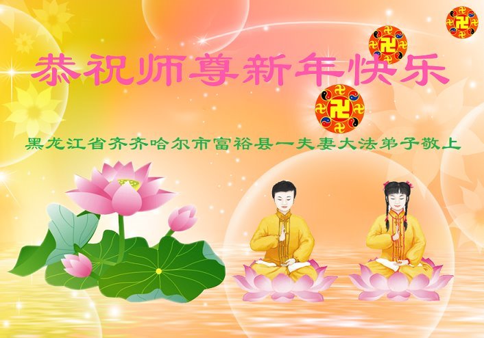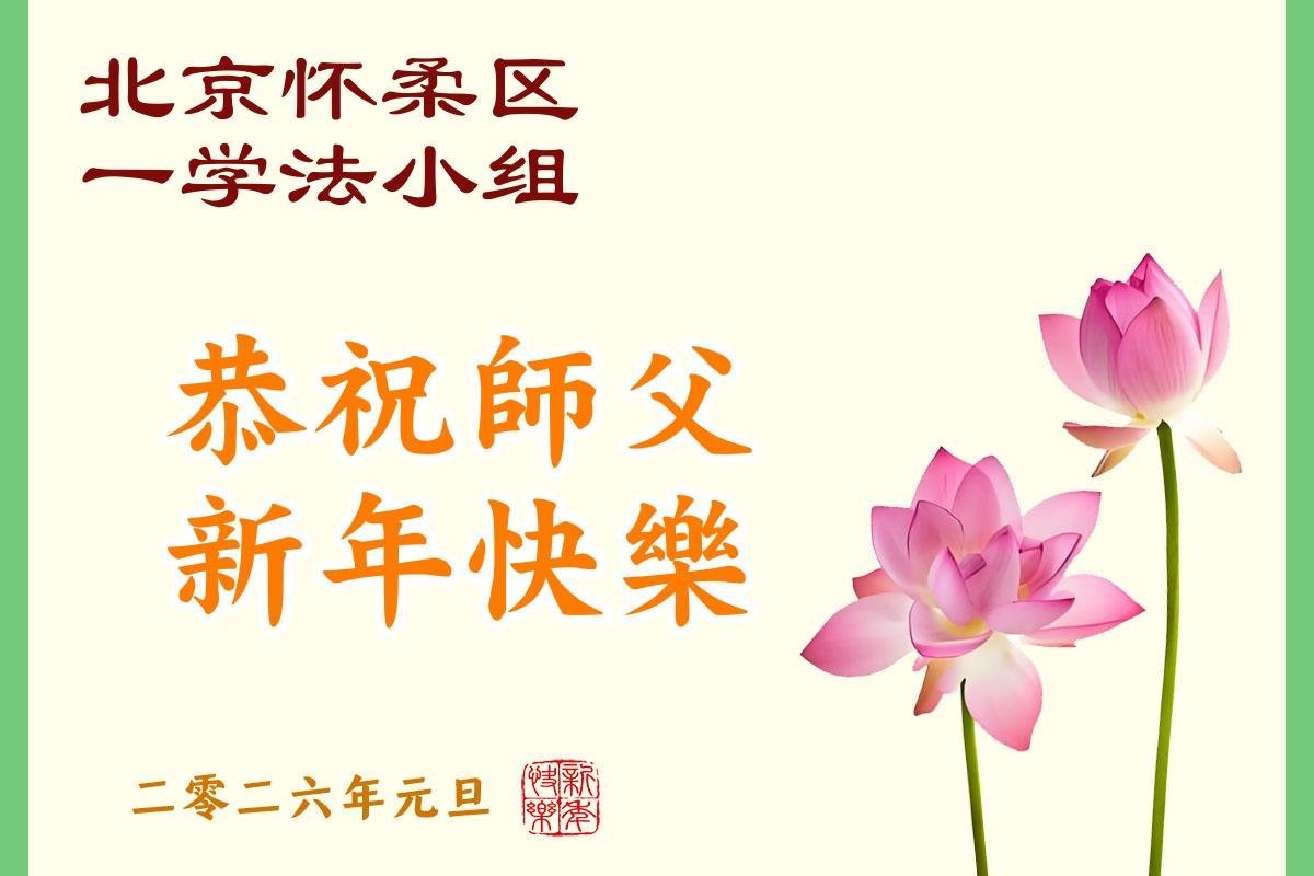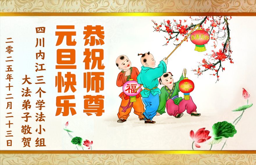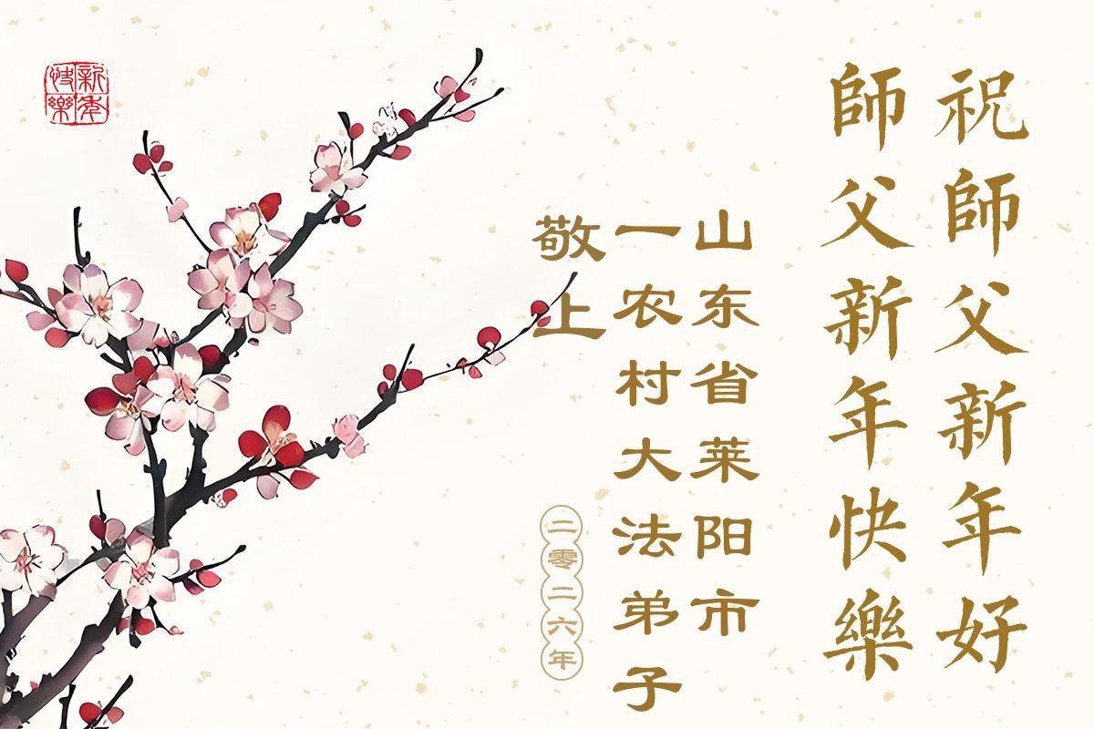 以下是部份来自中国各省、市、地区的学法炼功小组、讲真相小组、资料点大法弟子们敬致师尊的新年贺词贺卡: