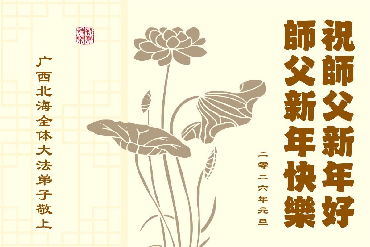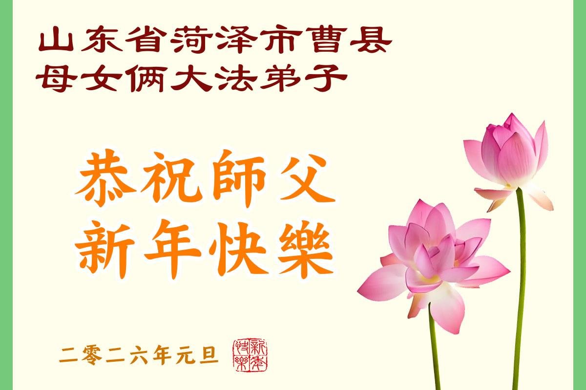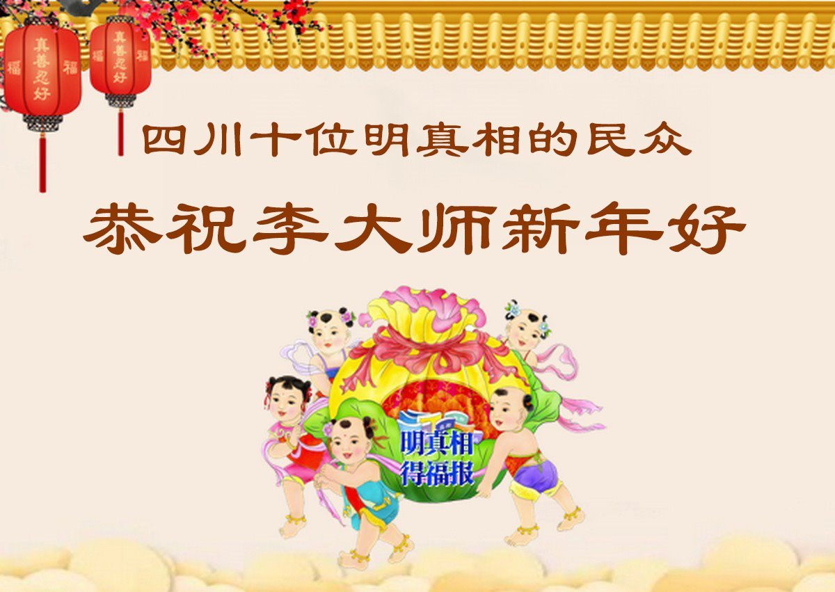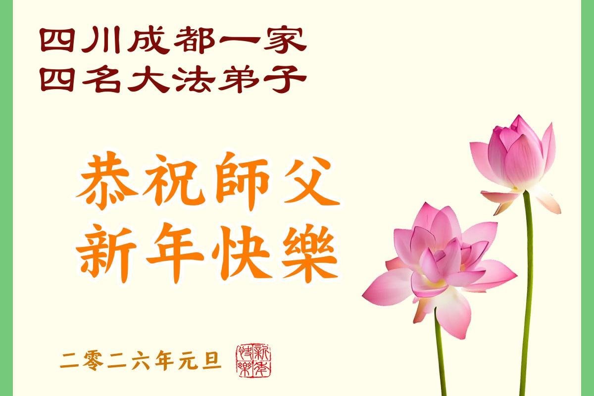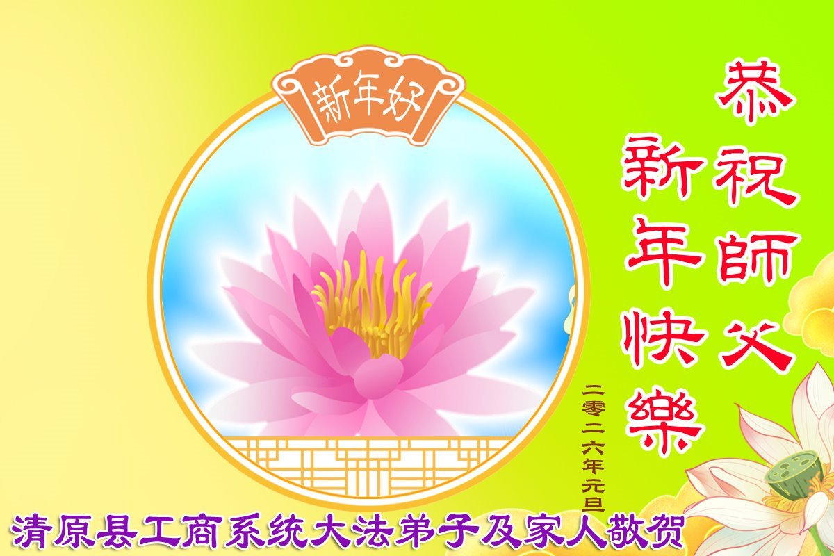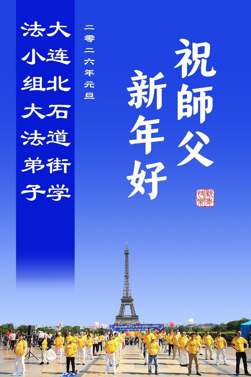以下是部份来自中国各省、市、地区的学法炼功小组、讲真相小组、资料点大法弟子们敬致师尊的新年贺词贺卡: