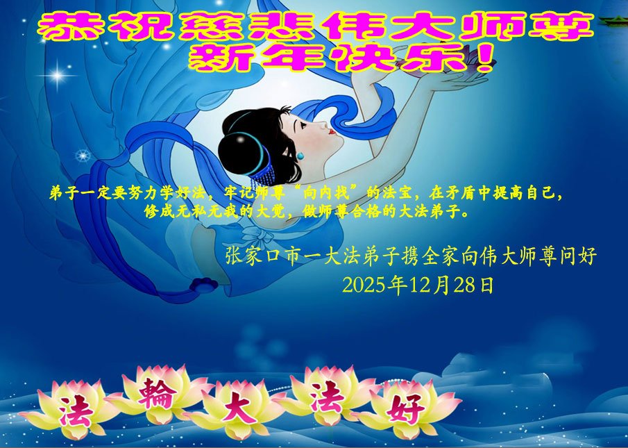 【明慧网二零二五年十二月三十一日】二零二六年新年钟声敲响之际,中国大陆30省、直辖市、自治区大法弟子同拜师尊,恭祝慈悲伟大的师尊新年好!