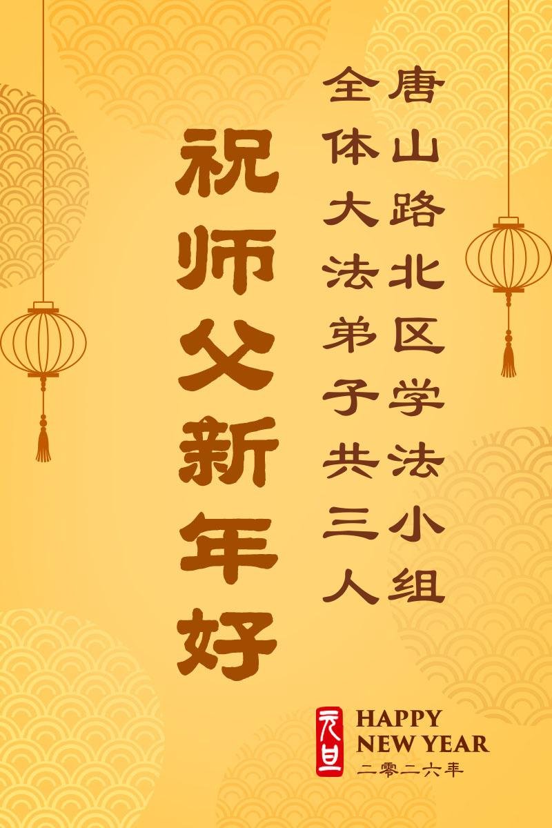 慈悲伟大的师尊您好,您辛苦啦!新年到来之际,我们十个学法小组的弟子们合十恭祝师尊新年好!新年快乐!弟子感恩师尊慈悲普度!我们每天三三两两的一起出去面对面讲真相救人,一起学法,相互提醒,共同升华,做好三件事圆容师尊要的。感恩师尊对弟子的一路加持看护!