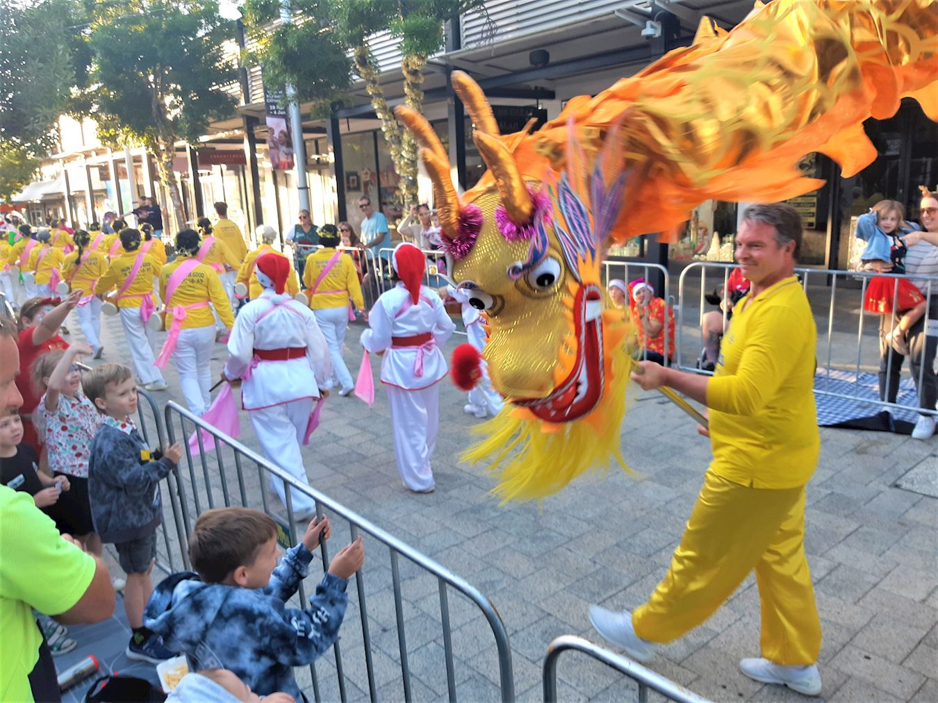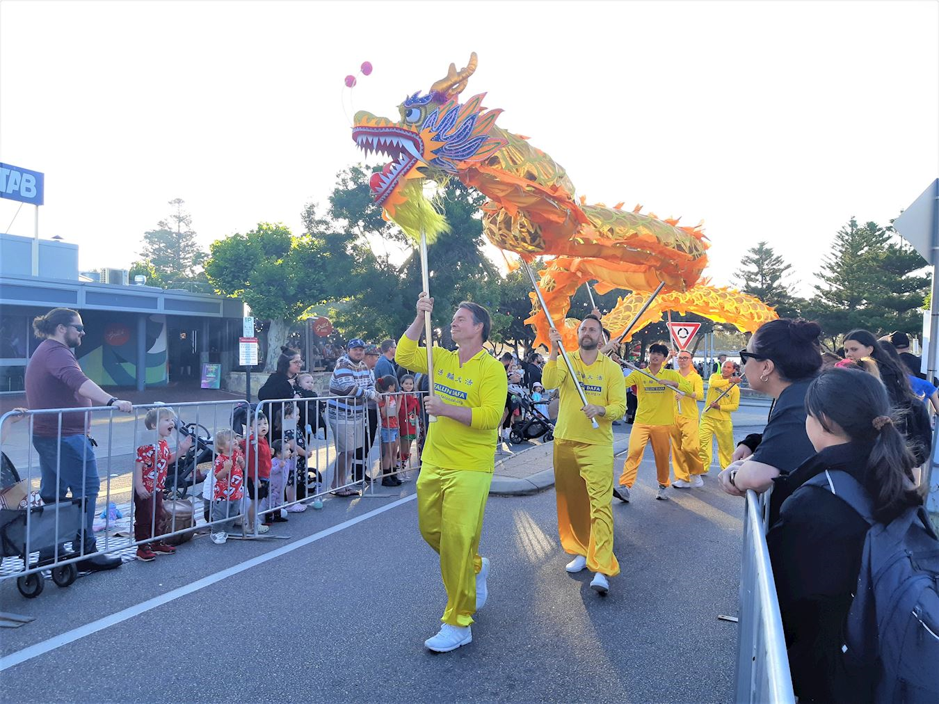 法轮功学员在游行中,不仅为当地居民送上圣诞祝福,也把法轮大法的美好带给了人们。游行团队包括仙女队、腰鼓队和舞龙队。大量沿途观众为法轮功学员的表演欢呼、喝彩,人们纷纷鼓掌赞叹、拍照录像,还有人随着音乐和鼓声舞动。人们对其亮丽的色彩以及祥和的能量赞赏不已。游行结束后,也有观众主动向法轮功学员表达感谢。