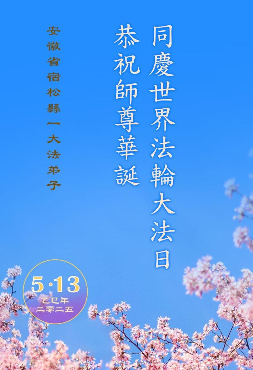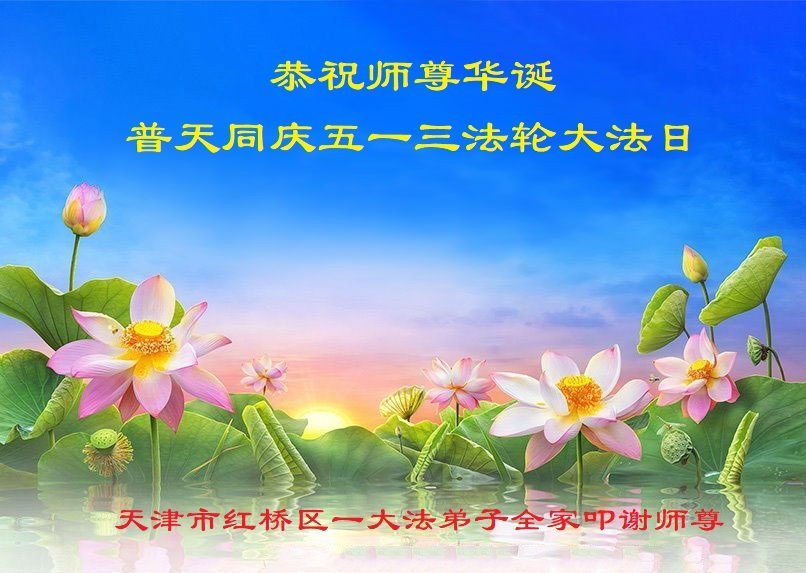 我们是九九年七二零之前得法的老弟子,历经种种风雨魔难,更加坚信大法,精進实修,以报师恩。在五一三世界法轮大法日来临之际,恭祝师尊生日快乐!我们想念师尊,盼望师尊早日回国,荣归故里。弟子敬拜师尊!谨以以下小诗敬献师尊。