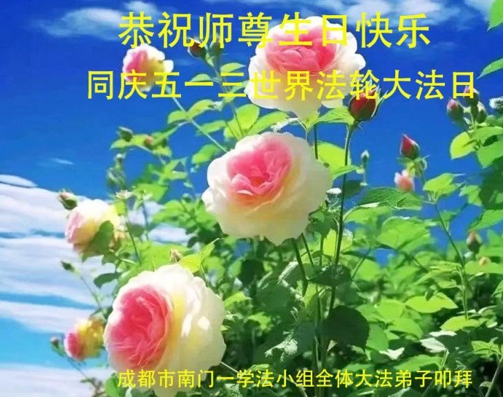 恭祝慈悲伟大的师尊生日快乐!普天同庆“五一三”世界法轮大法日!弟子感恩师尊慈悲救度。无量洪恩!感激无尽言!师恩难报,弟子唯有精進实修,做好三件事,多救人,以谢师恩!