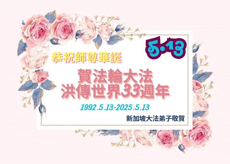 恭贺法轮大法洪传33周年!恭贺世界法轮大法日!师恩浩荡!谢谢师父慈悲苦度!弟子精進实修,随师救度众生。随师开创新纪元。