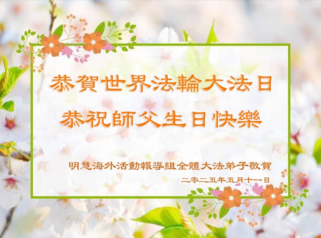 恭贺法轮大法洪传三十三周年!恭贺世界法轮大法日!恭祝师尊华诞!谢谢师父!师父您辛苦了!