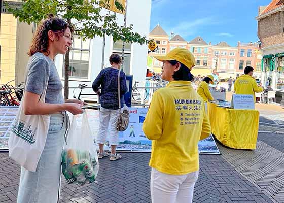 二零二五年九月六日星期六,荷兰巡回真相点来到荷兰西部的代尔夫特传播法轮大法的美好,揭露中共对法轮功的迫害,受到民众欢迎。