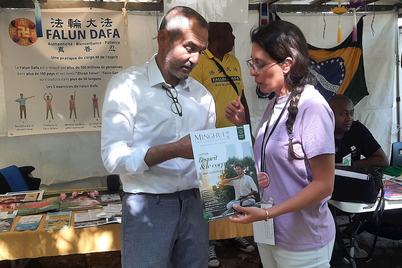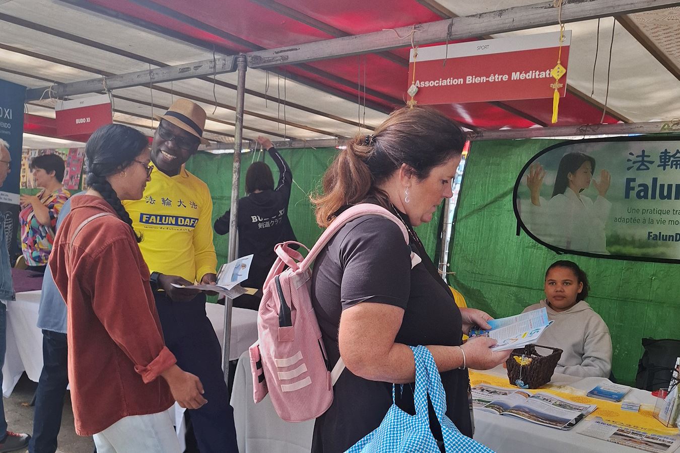 九月六日,法轮功学员参加了巴黎十一区的协会论坛,不少民众来到展位前拿取法轮功简介,并与学员交谈,了解学炼方法。很多交谈都是非常愉快的。
