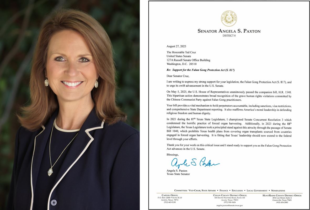 目前,又有包括德州参议院多数党领袖安吉拉‧帕克斯顿(Angela Paxton)、德州众议院多数党领袖汤姆‧奥利弗森(Tom Oliverson)在内的十位德州重量级议员分别致信克鲁兹参议员,强烈支持《法轮功保护法案》,并敦促这个具有历史意义的法案迅速获得通过。