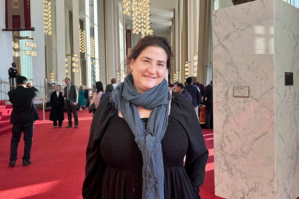 图6:二六二零六年一月十一日下午,“让美国再次健康”(Make America Healthy Again)行动组织的总法律顾问迪尔德丽·戈德法布(Deirdre Goldfarb),在美国华盛顿DC观赏了神韵演出。(大纪元)