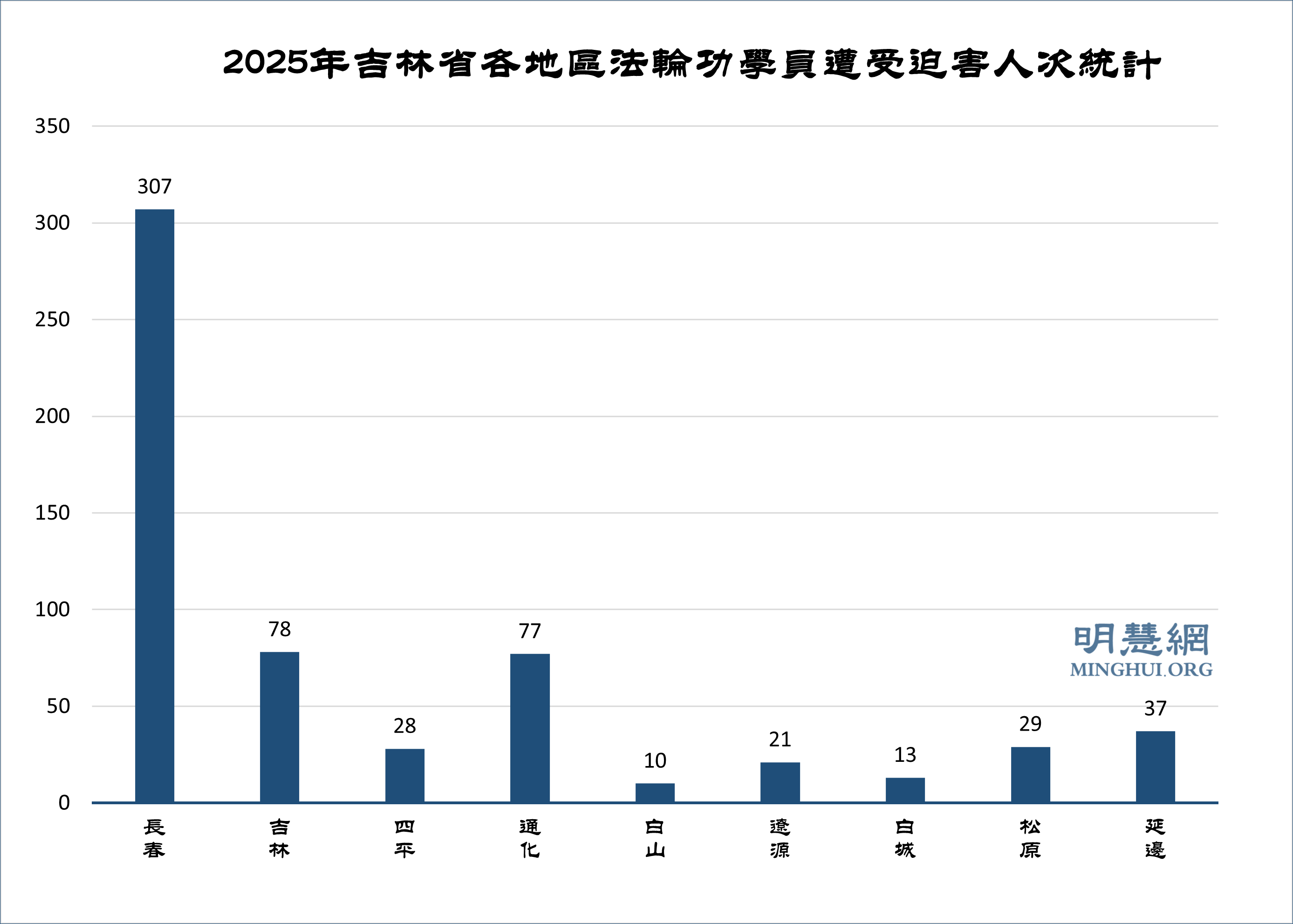 根据明慧网曝光的迫害案例的不完全统计,二零二五年吉林省九个地区的法轮功学员依然遭受着各种不同程度的迫害,迫害的人数600人次。
