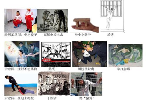劳教所、监狱折磨法轮功学员的部份酷刑演示图: