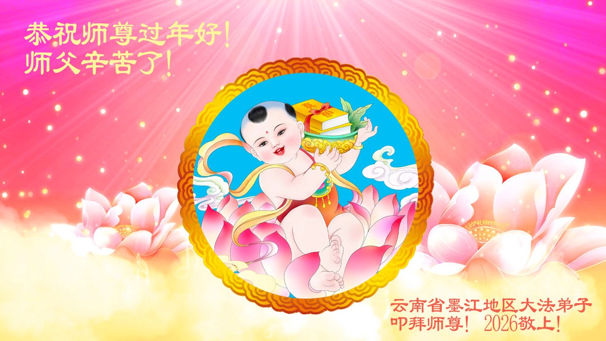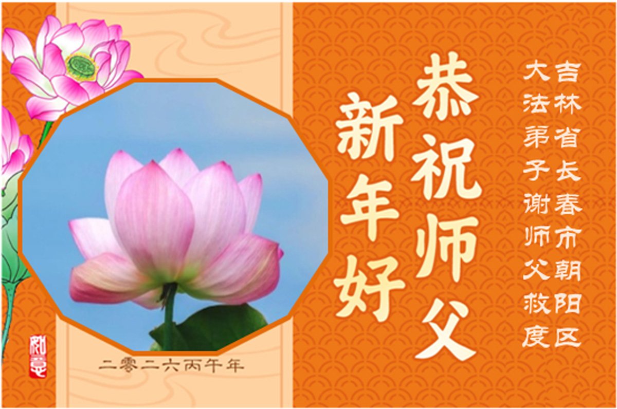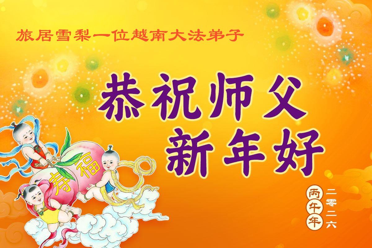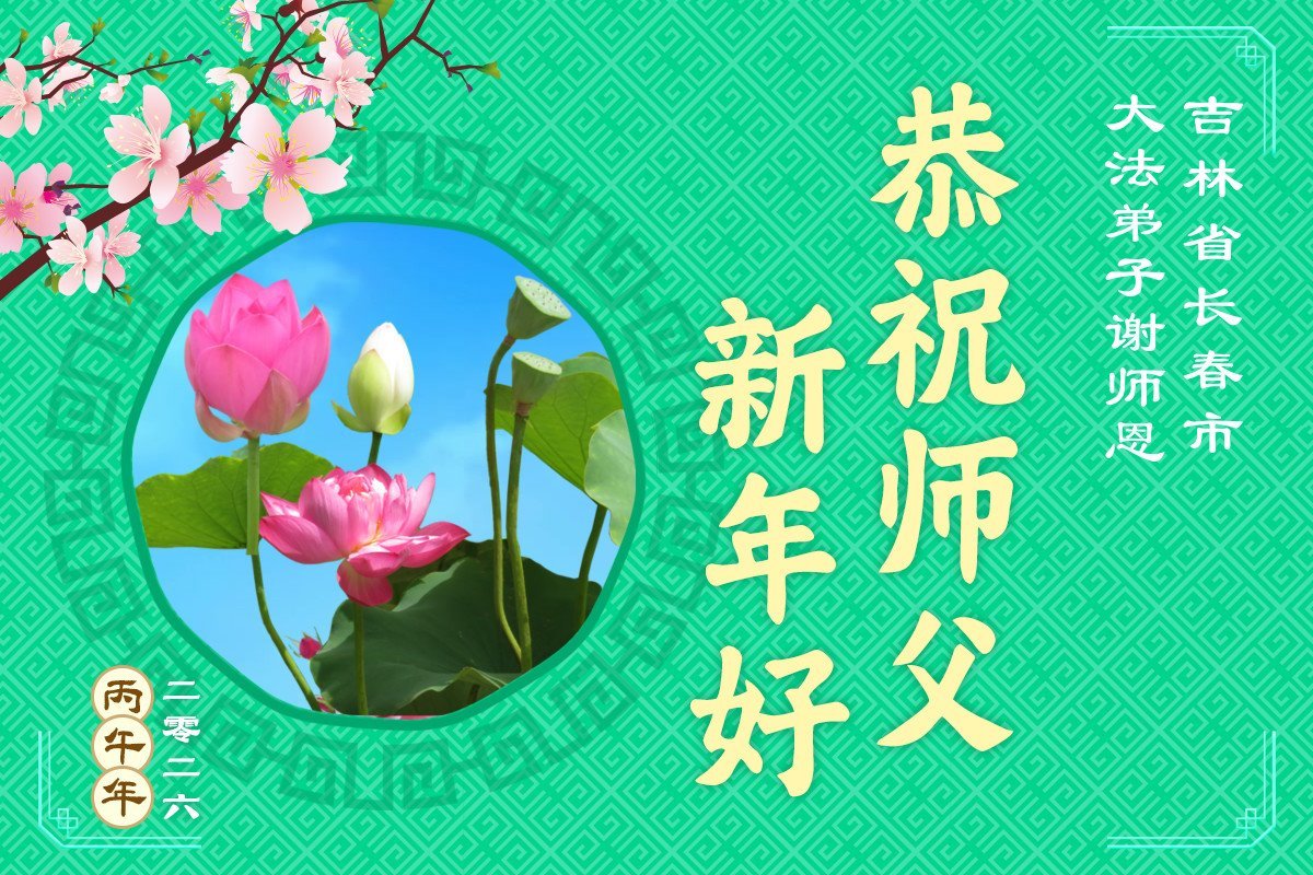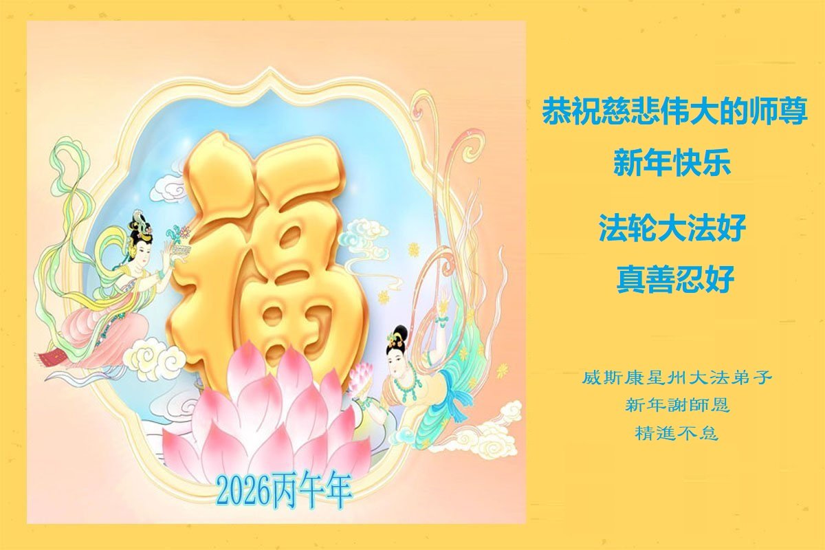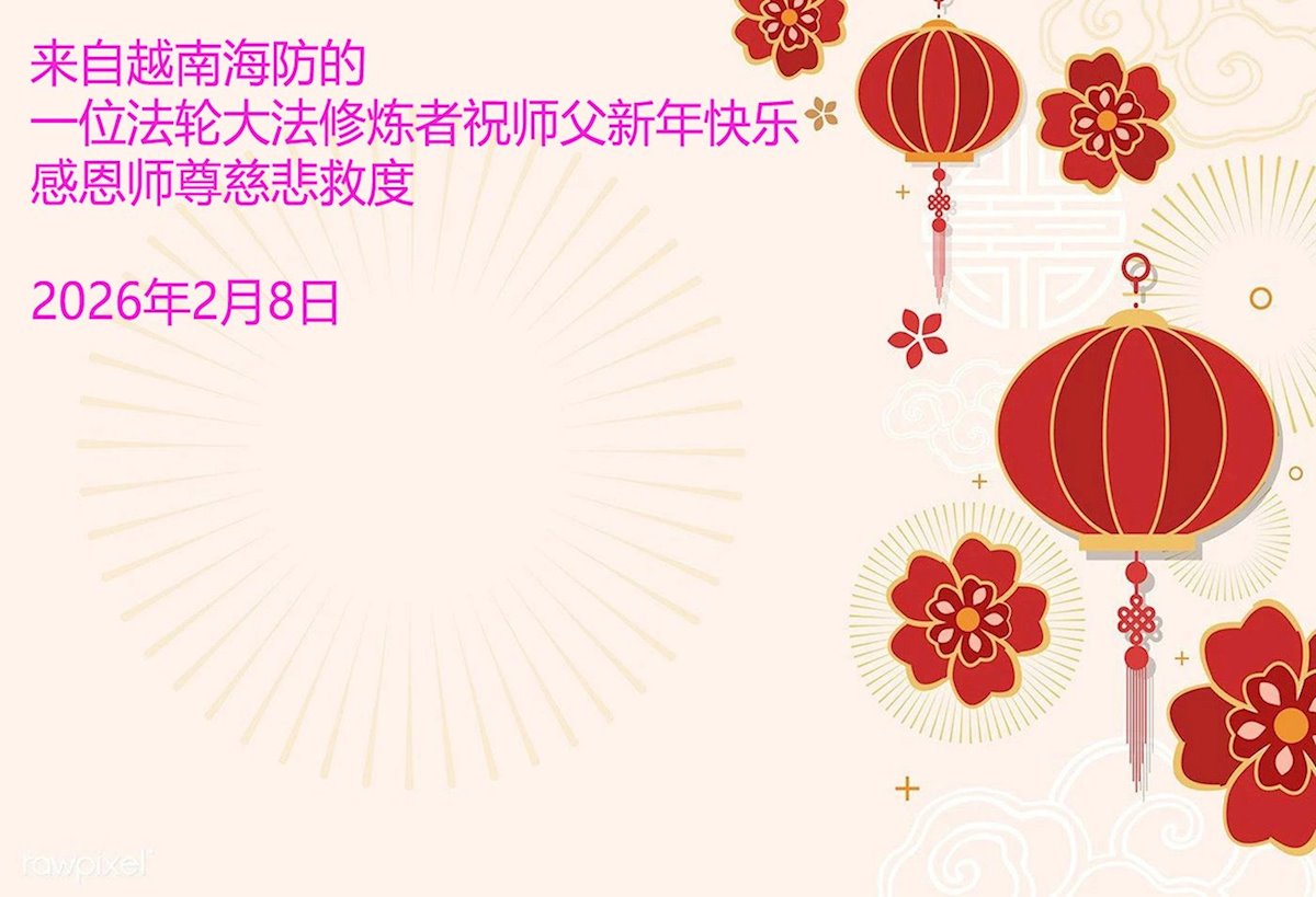 师父,祝您新年快乐!我非常幸运能得大法,我会努力改進我的言行举止。我很幸运,师父救了我一命:当时我开车时被一辆飞驰的摩托车撞倒,我闭上了眼睛,没有意识到发生了什么。师父,我的母亲也得到您的保护。