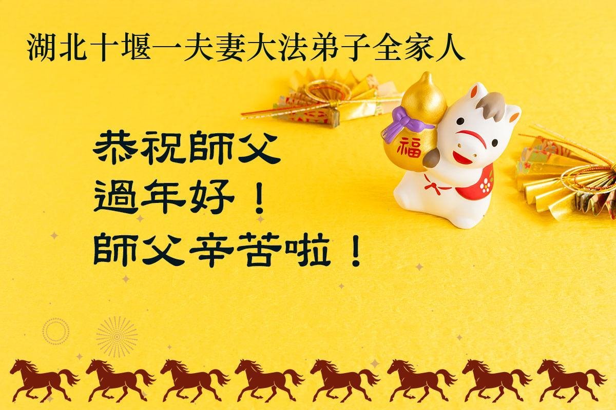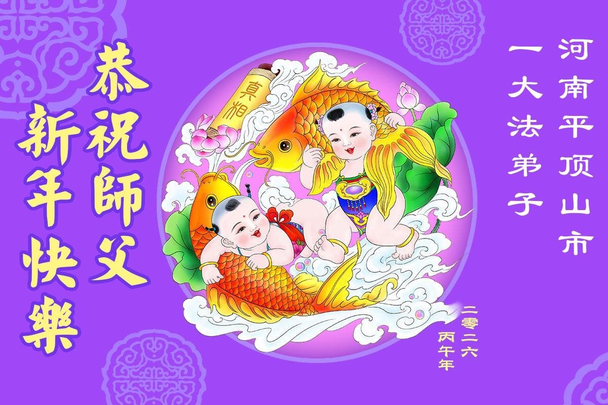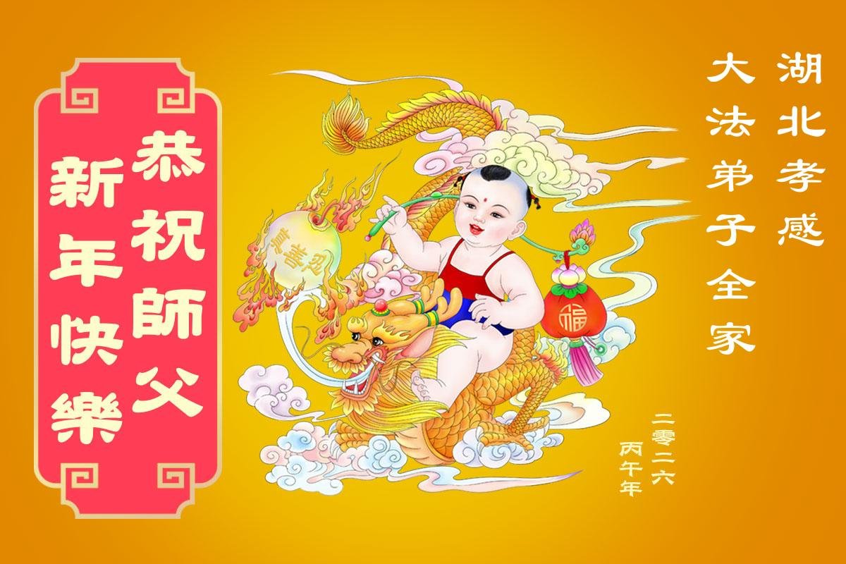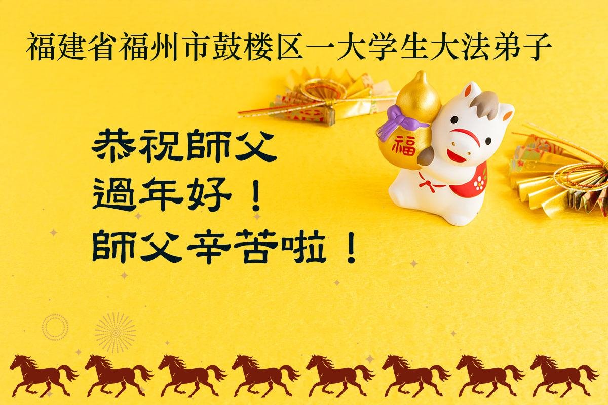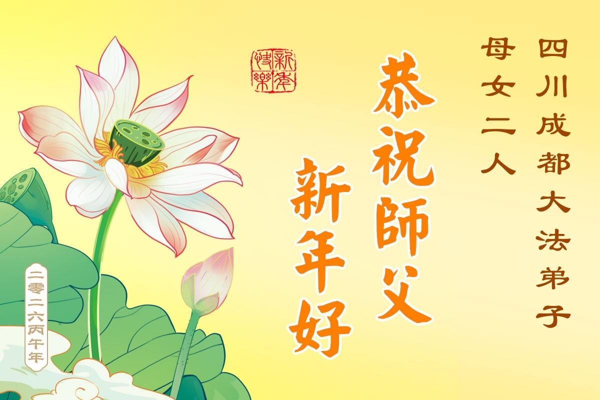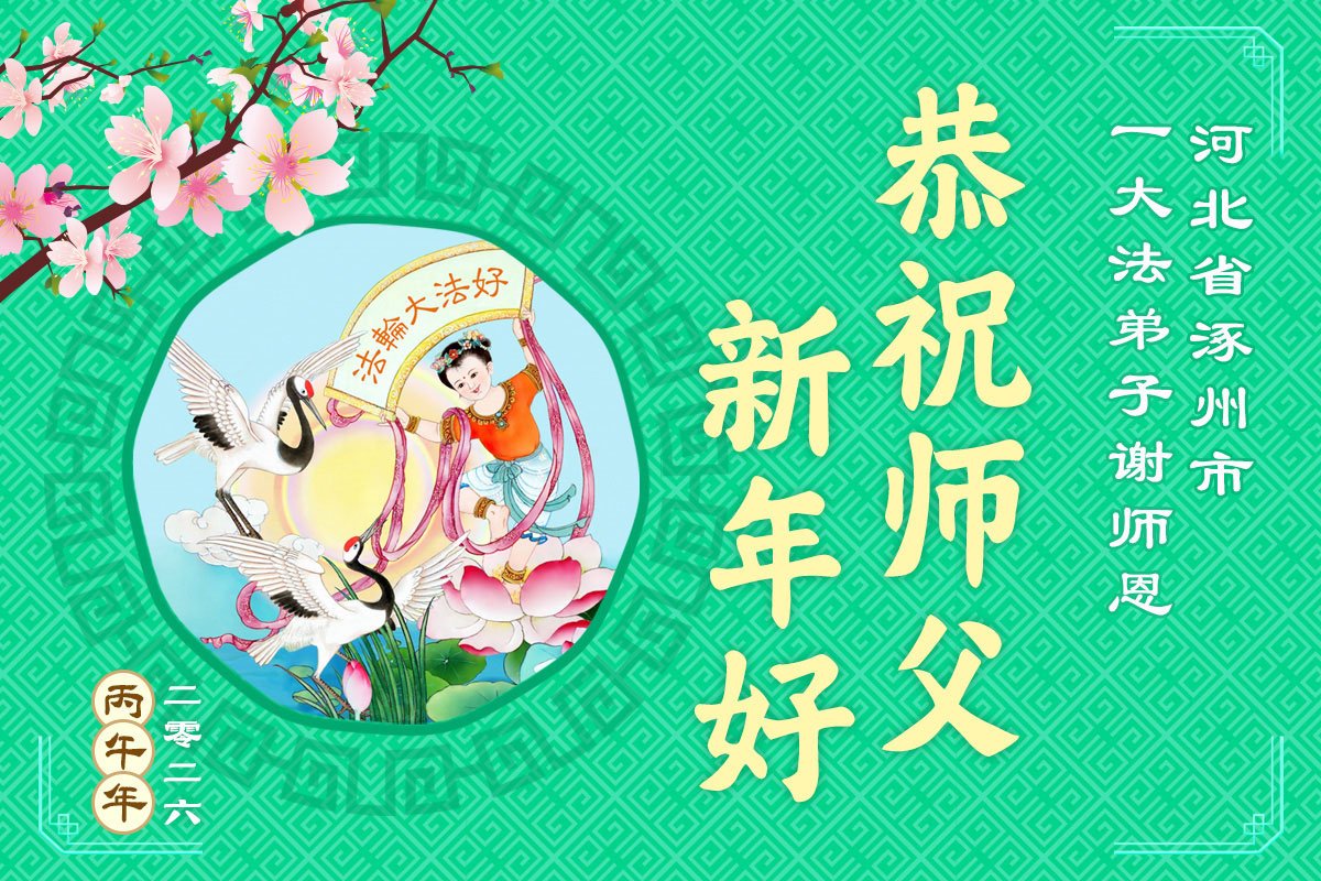 师父,祝您新年快乐!我非常幸运能得大法,我会努力改進我的言行举止。我很幸运,师父救了我一命:当时我开车时被一辆飞驰的摩托车撞倒,我闭上了眼睛,没有意识到发生了什么。师父,我的母亲也得到您的保护。