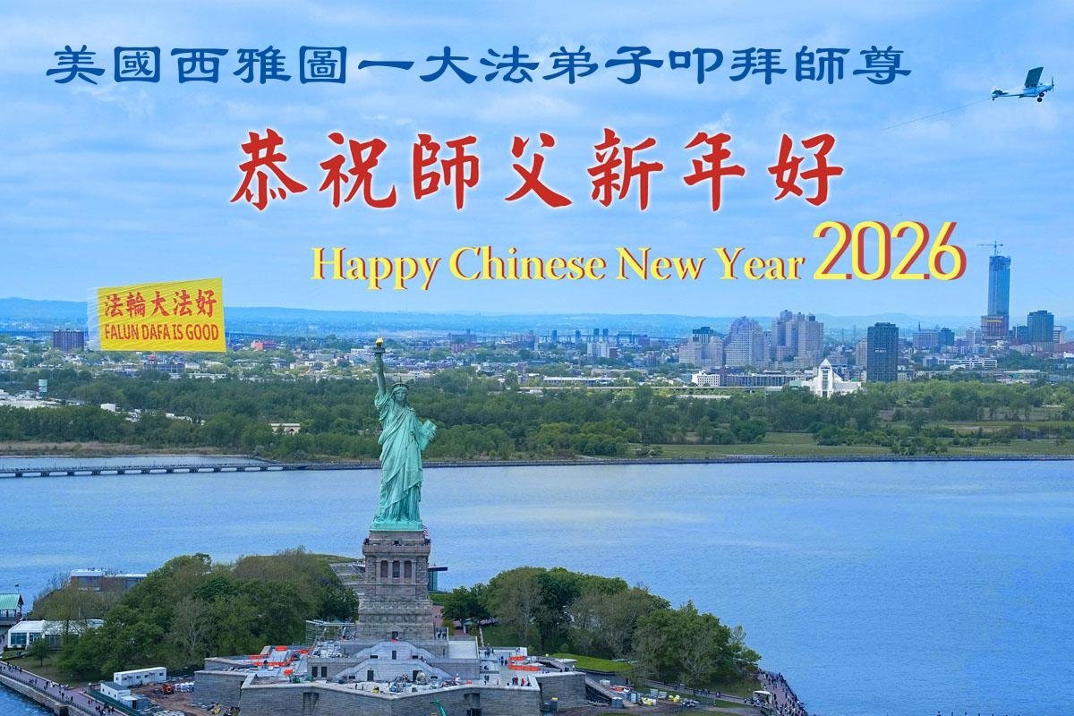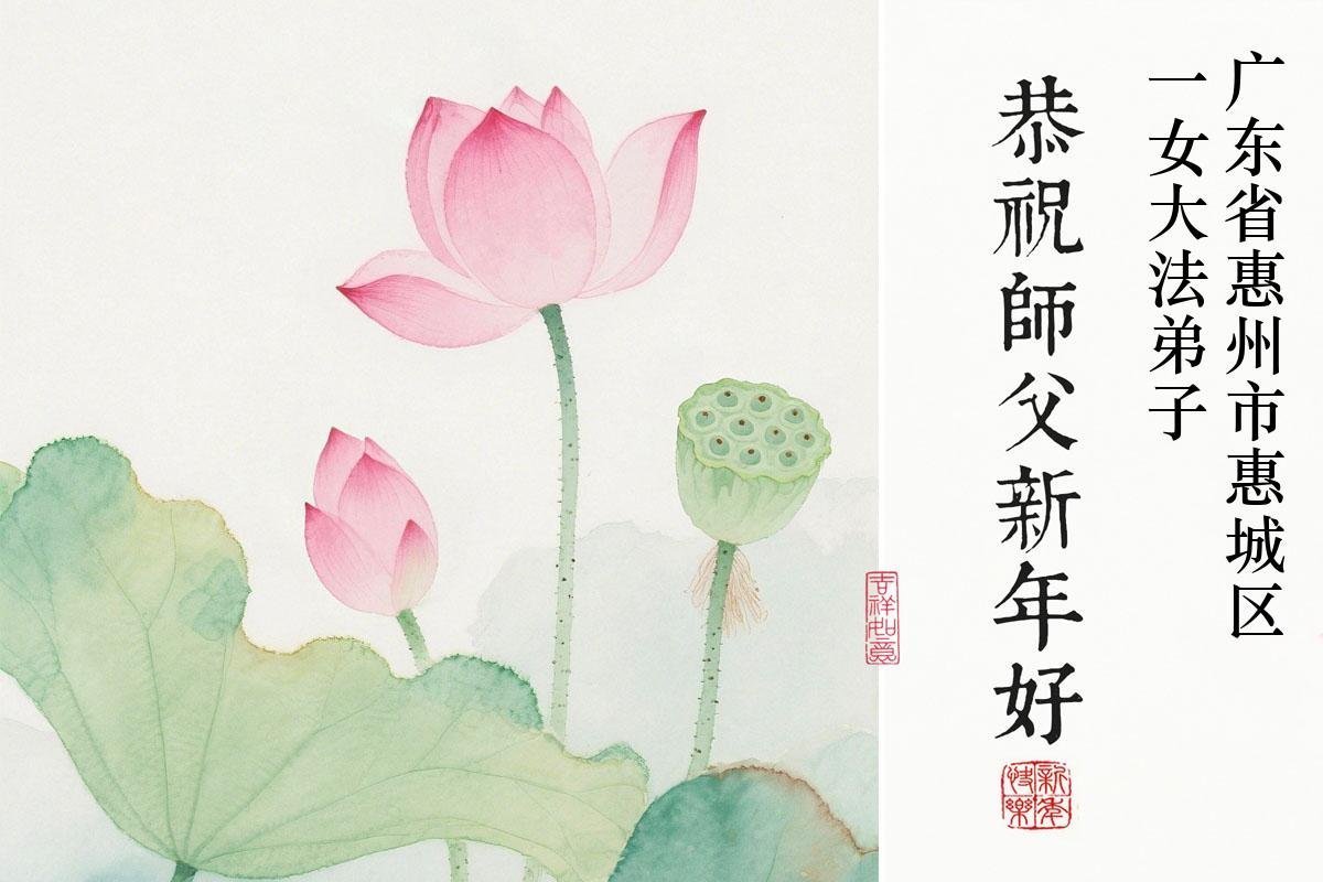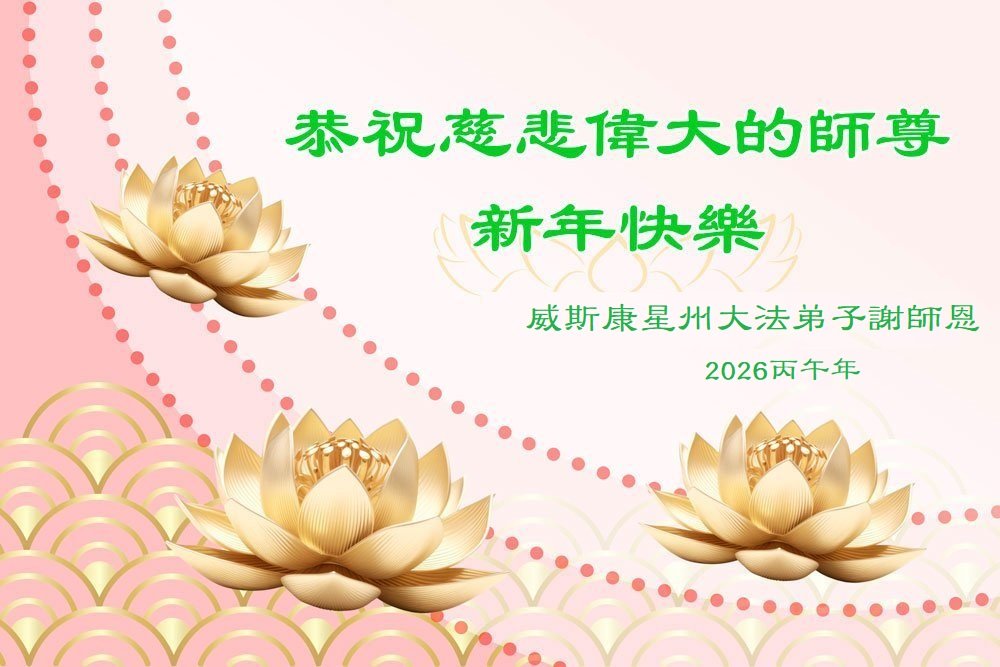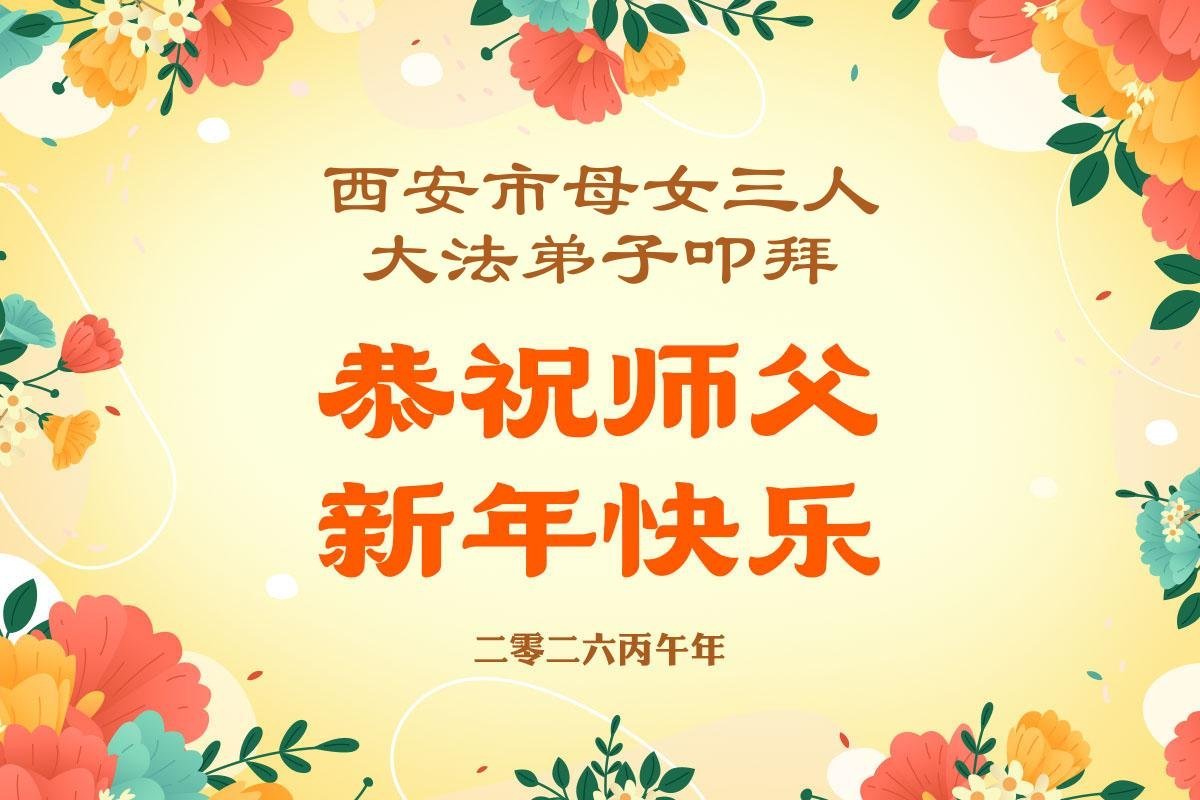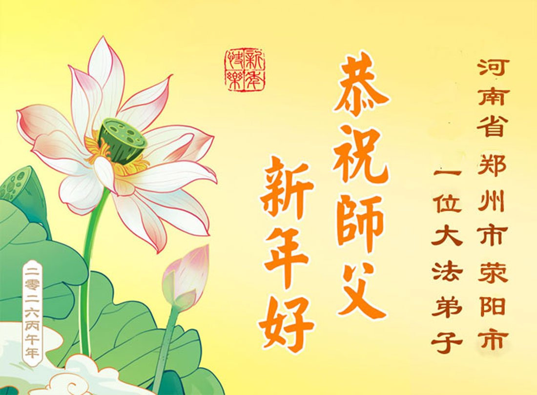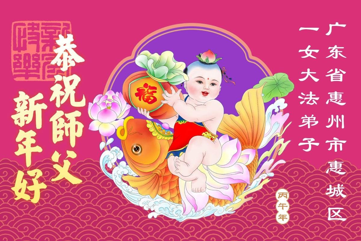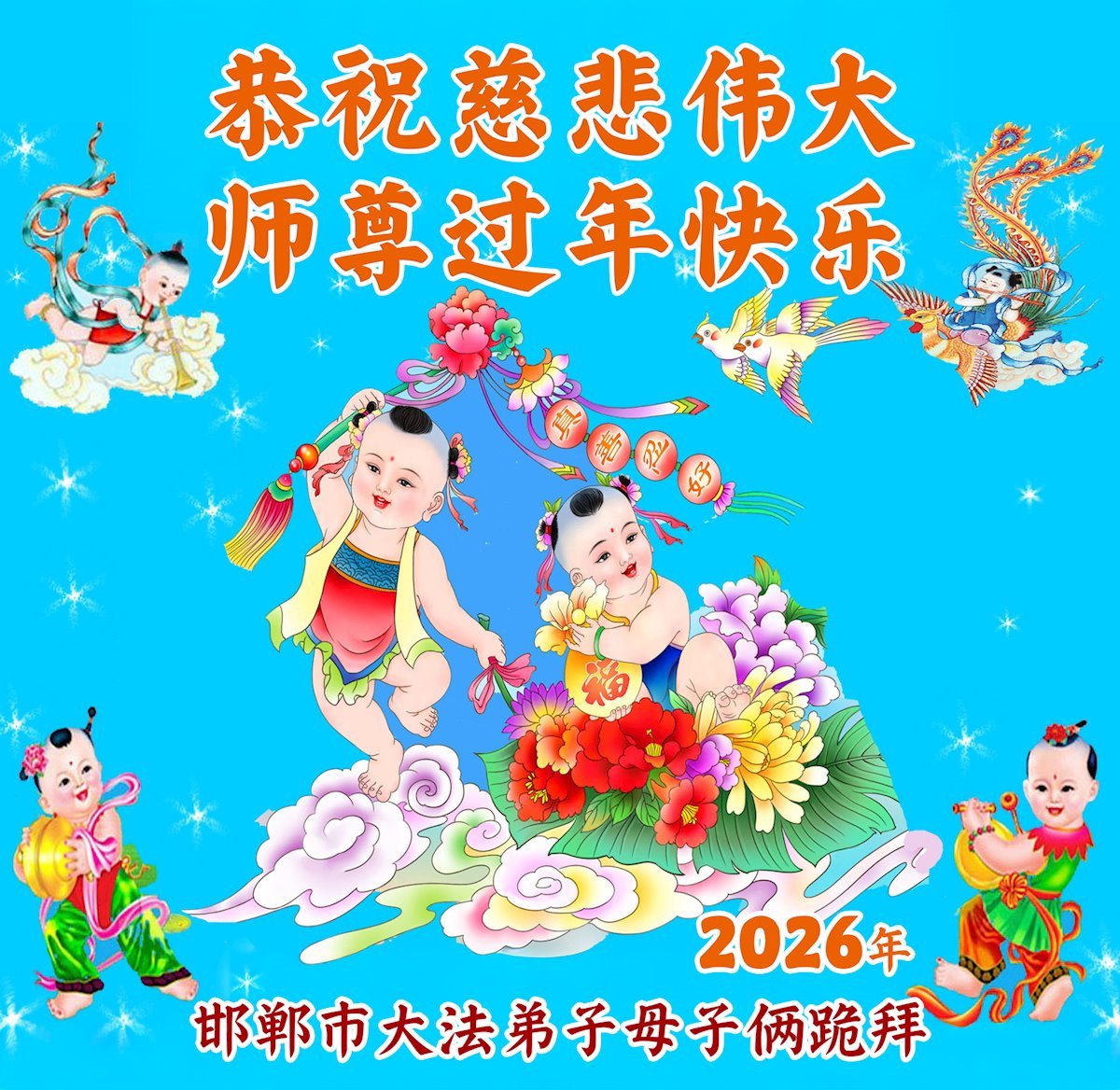 师父,祝您新年快乐!我非常幸运能得大法,我会努力改進我的言行举止。我很幸运,师父救了我一命:当时我开车时被一辆飞驰的摩托车撞倒,我闭上了眼睛,没有意识到发生了什么。师父,我的母亲也得到您的保护。