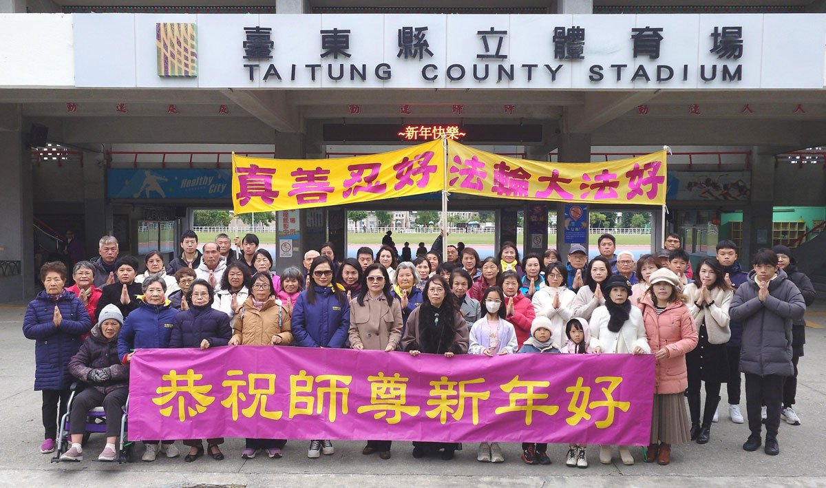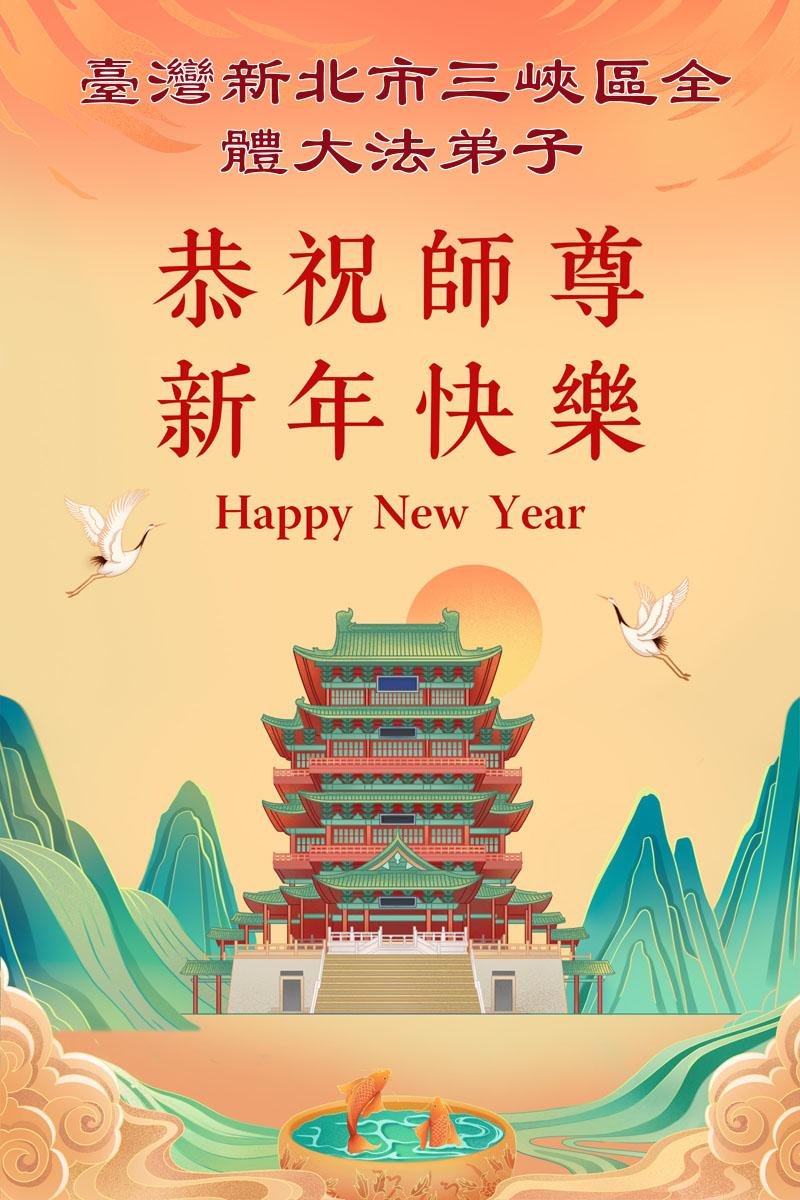 弟子们在板桥区府中广场恭祝李洪志师父丙午年新年好!弟子们以最诚摰的心情齐声祝贺:“恭祝师父新年好!法轮大法好,真善忍好!”并一起颂唱《法轮大法好》、《师父啊,谢谢您!》两首歌曲,表达弟子们对师父的无限感恩。