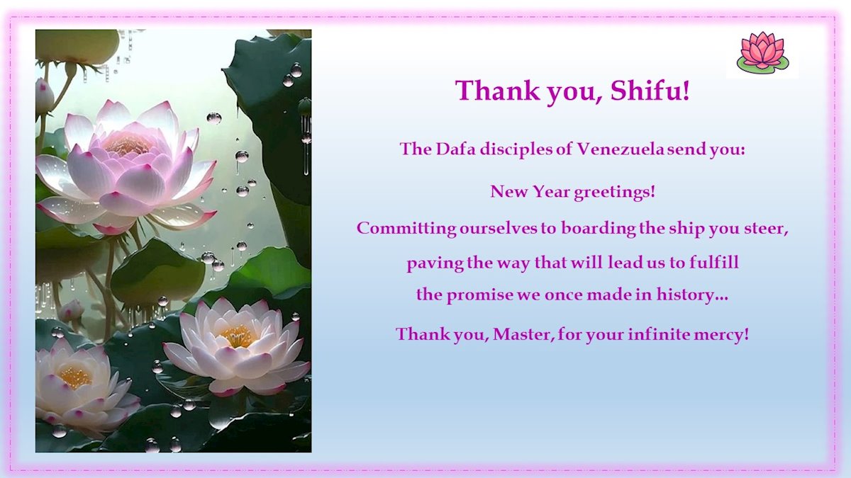委内瑞拉大法弟子恭祝师父新年好!将在2026年继续走在修炼之路上。